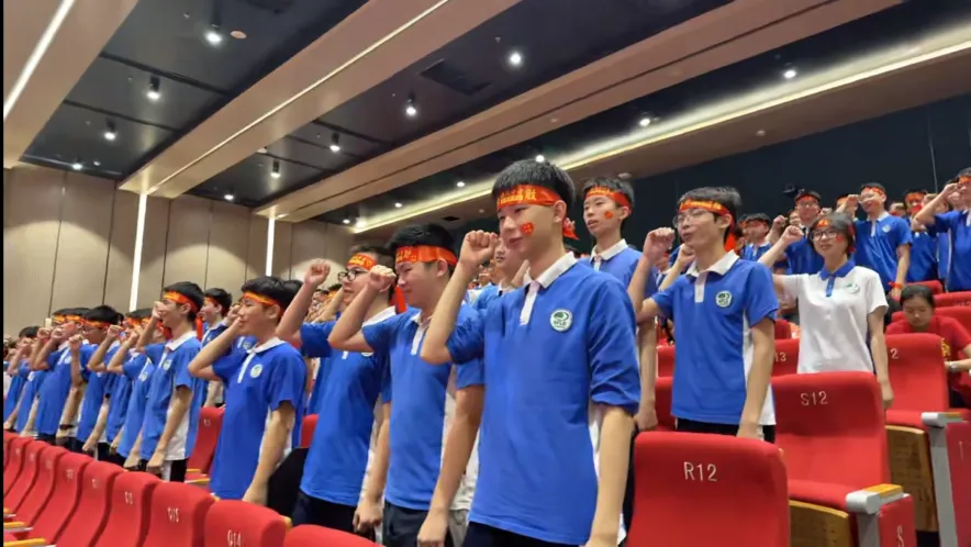 随后,各班执旗手高举红色冲锋班旗,依次带领班级喊出迎战中考的响亮宣言,一声声呐喊震彻会场,一句句誓言激荡人心,昂扬的斗志在校园中升腾,必胜的信念在学子心中深深扎根。