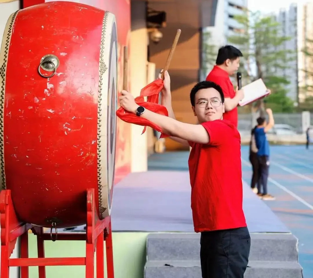 战鼓擂响,征程开启!级长郑航老师在主席台前擂响出征的战鼓,声声鼓点振奋人心、催人奋进。在于辰夫老师的主持下,七八年级的学弟学妹们,也用嘹亮的声音和饱满的热情,向九年级学长学姐们致以最热烈的加油助威。