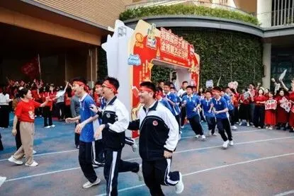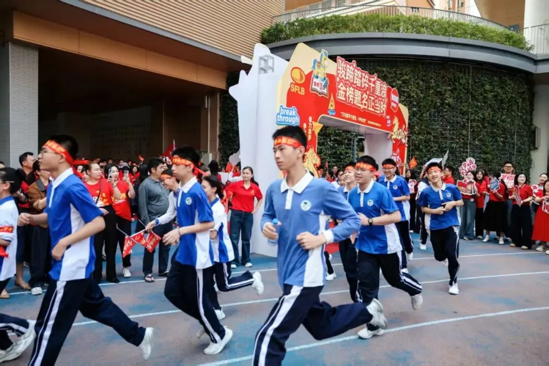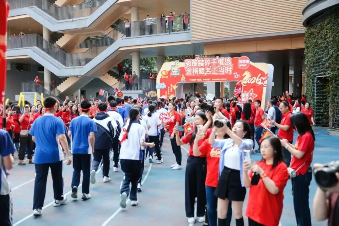各班执旗手高举班旗,带领班级迈着铿锵有力的步伐,沿红毯小跑穿过“成功门”。沿途,老师们与家长们翘首以盼,用深情的目光、有力的击掌,为每一位学子送上最真挚的祝福。