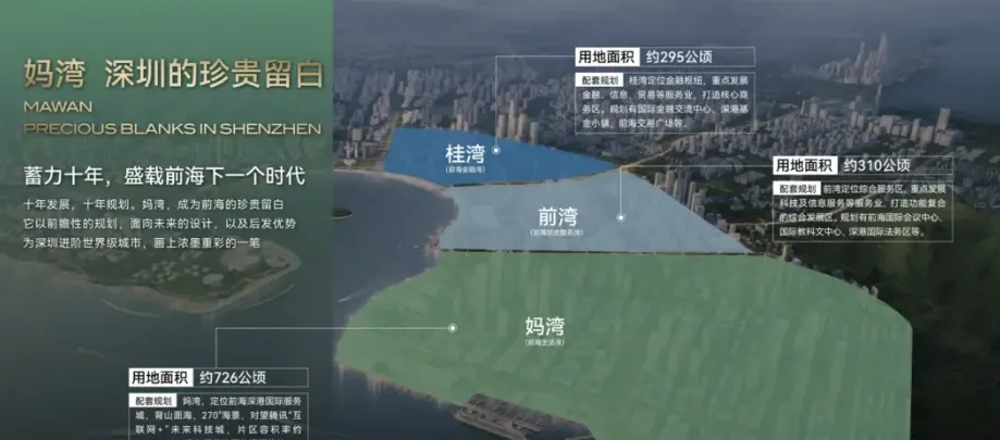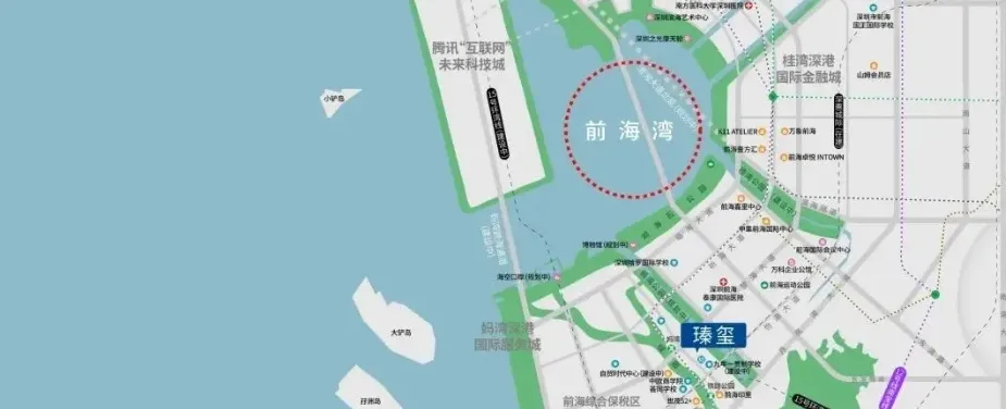 招商领玺项目整体占地面积约2.9平方公里土地,几乎占据了前海妈湾片区的一半土地,规划7大单元板块,是集办公、居住、商业、酒店、文化娱乐配套设施于一体,建筑面积超500万㎡的恢弘体量。前海划分为3个片区,桂湾、前湾和妈湾,桂湾是金融区,前湾类似政务区,妈湾是比较纯粹的居住区。桂湾和前湾启动比较早,地块比较零散,虽然配套相对成熟,但地块小缺乏规模效应。而妈湾因为城市规划和建设比较后置,货车络绎不绝,集装箱堆积,成熟度不够高,给人留下不好的固有印象。但妈湾是三湾中体量最大的,留白净地很多,规划方面也比较超前,有一定的后发优势,比如“智慧妈湾”的打造理念,首条海底隧道接驳企鹅岛等等。考虑到未来的长期发展,妈湾开发比较后置,自然起点和定位就会更高,地理位置上说不定顺势成为前海真正的中心。从位置上看,妈湾是唯一一个在三个湾区里面拥有270°视野,两面临海,容积率极低,未来有希望成为高端宜居生活住区。图中看清楚妈湾未来的配套规划,有沿滨海岸线建设金融博物馆、改革开放博物馆、国深博物馆、海洋博物馆、渔人码头、前海新中心地标等市政配套集群。根据规划,妈湾有2.9平方公里的土地由招商局集团和前海管理局合资成立的公司统一开发运营,最新定位是前海深港国际服务城,与桂湾深港国际金融城共同组成了前海双核,是前海扩区后的首要、重点推进项目。而在此前,妈湾先导区还曝出丝路长廊、海丝小镇、1.6平方公里的空中平台、前海新地标等规划,将建设国家馆、国际经贸组织和国际文化交流组织等集群,并引进国内、国际总部企业集群。此外,妈湾还确定要牵手腾讯,对标世界第一个智慧城市迪比克,打造以5分钟步行生活圈为基本功能模块的智慧理想人居空间。妈湾背靠大小南山,对望大铲湾腾讯科技城,既有内湾又有外海,拥有“山、海、林、城、岛、港、湾、河”等优势生态资源。要知道,市政配套可以从无到有,但自然资源是不可再生亦不可复制。即使放眼全球,有着丰富生态资源的片区往往价值更高。妈湾面积高达726.5公顷,比桂湾(295公顷)和前湾(310公顷)的总和还要多出20%,而且容积率仅为1.28-1.48,可开发空间充足、舒适度高,大有可为。此等优质的地理位置+优越的自然资源,是打造低密生态豪宅住宅区的不二选择,深圳很难再找出第二个这样的区域。这也就是官方不着急最先发展妈湾的原因。先建设配套、发展人才,再建房,增补前湾和桂湾的居住和公共服务功能,这样才是一个板块的良性发展。周边共规划6条地铁线、2条城际轨道、1条妈湾跨海隧道及1个海空口岸。距5号线妈湾站约550m,听海大道贯穿前海,可短时间通达南山、福田、宝安,快速链接大湾区生活圈领玺一期项目自带16.7万平商业,加上不远处颐湾府底商,基本可以满足日常生活。印里首期商业(约3万平),去年9月正式开业,会有愈欣书店、SEESAW咖啡、罗森便利店、丘大叔柠檬茶等多个品牌入驻项目周边拥有15所幼儿园、4所义务教育学校,还有荔湾小学和深大附中等学校都在周边。此外项目靠近多所国际学校,拥有3000到5000个名额,包括荟同国际学校、礼德国际学校、英国国王学校(深圳分校)以及深圳哈罗国际学校。临近小区南侧有一块九年制教育用地,但目前未招标。入住早期可能要到妈湾南二外学校或者前湾南二外学校上学。2、靠近前湾公园和海岸线,部分高楼层可以享受到河景和海景3、项目周边待开发地块多,商住氛围需要一定时间兑现总体来说,湾启紫荆府是一个结合了优越地理位置和高品质住宅设计的项目,适合追求生活品质和便利交通的购房者。然而,购房者也需要考虑到建设进度和市场竞争可能带来的变化。