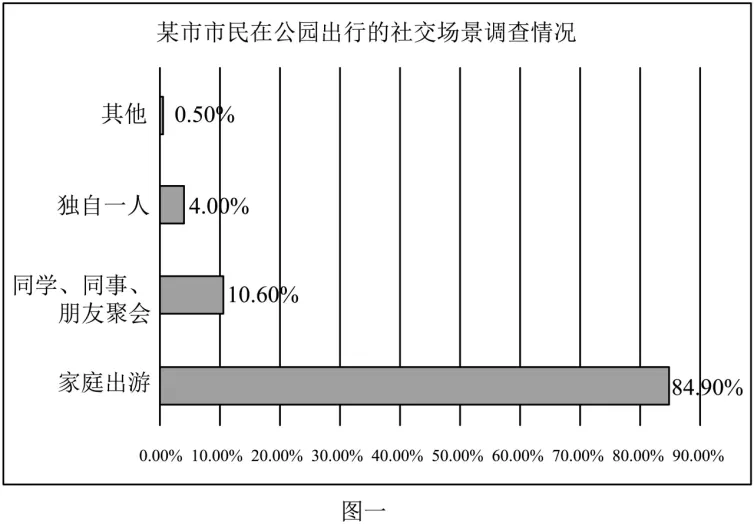 (1)观察材料三图一“某市市民在公园出行的社交场景调查情况”,家庭出游的占比高达84.90%。而“同学、同事、朋友聚会”占比仅10.60%,“独自一人”占4.00%,“其他”更是只有0.50%。家庭出游的占比数值,大幅领先于其他社交场景类型,由此清晰可知,在该市市民公园出行的社交场景里,家庭出游是绝对主流,体现出家庭活动在公园出行场景中的突出地位。