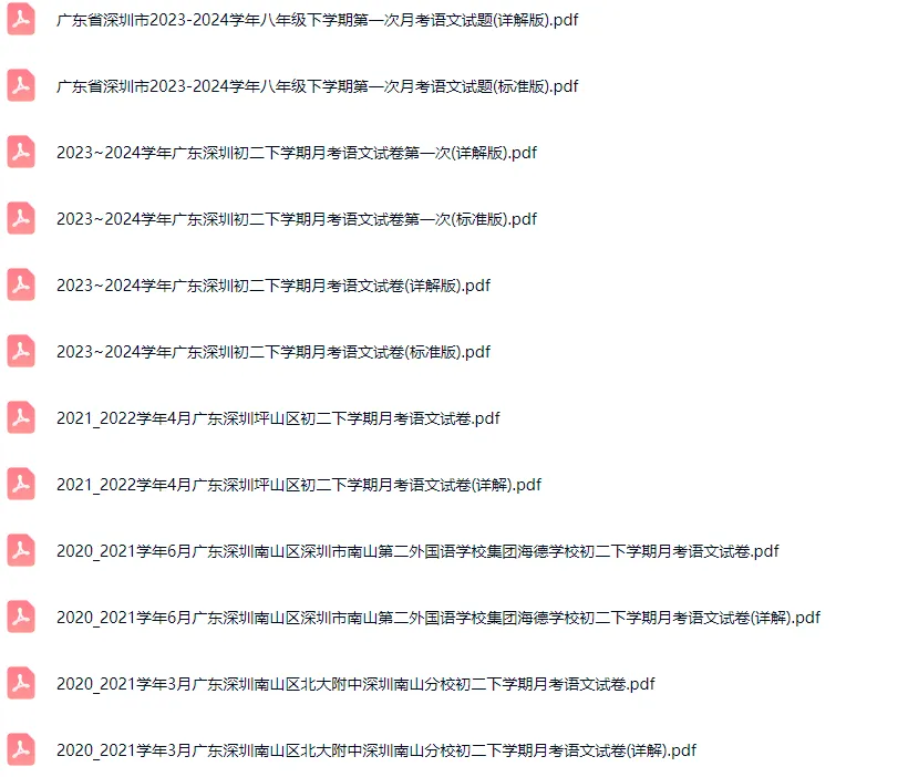 >30套2016-2024学年深圳各区初二下学期月考语文真题及答案解析