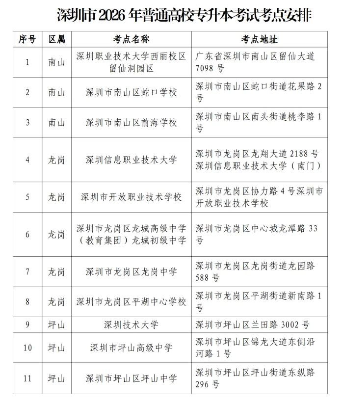2026年普通高等学校专升本考试(含三二分段专升本转段考试,简称普通专升本)省统考科目将于3月28日至29日进行。结合我市实际情况,全市在3个区共设11个考点。市招考办提醒广大考生注意以下事项: