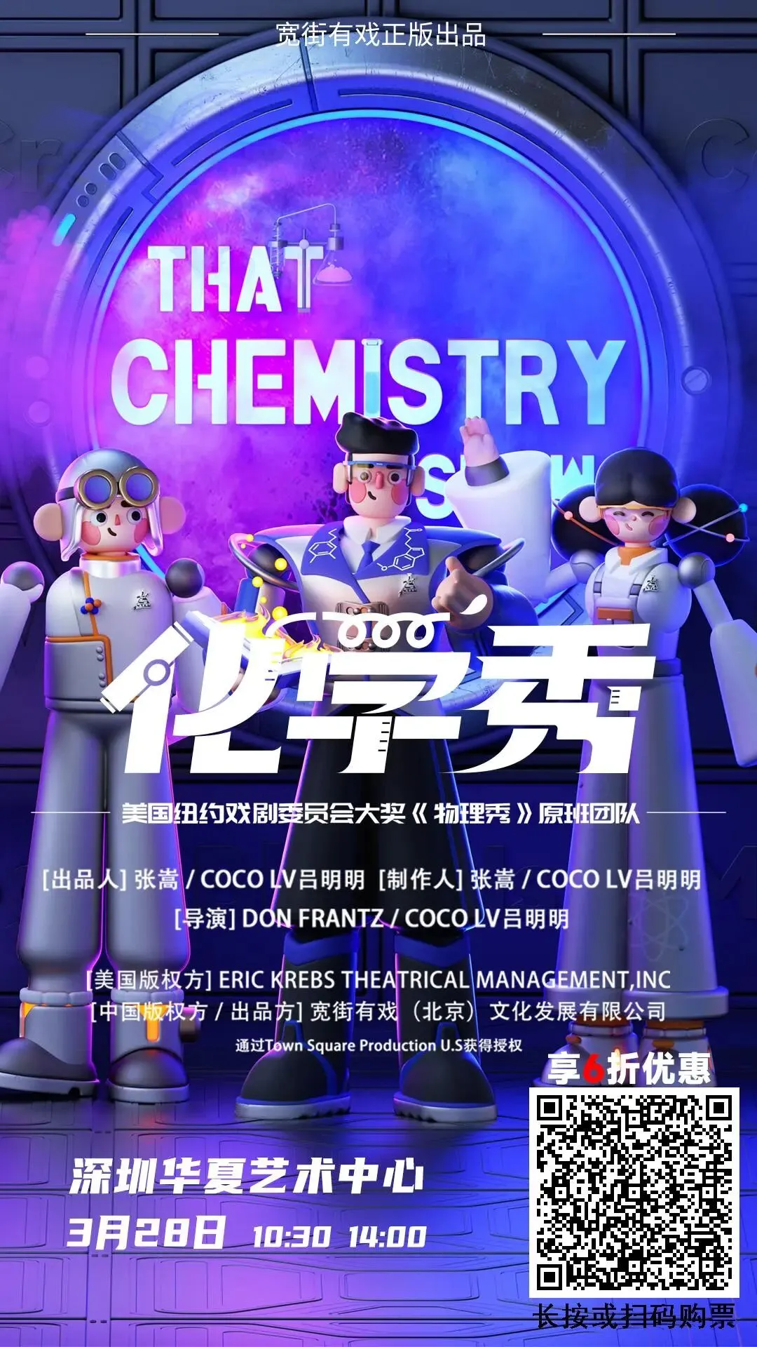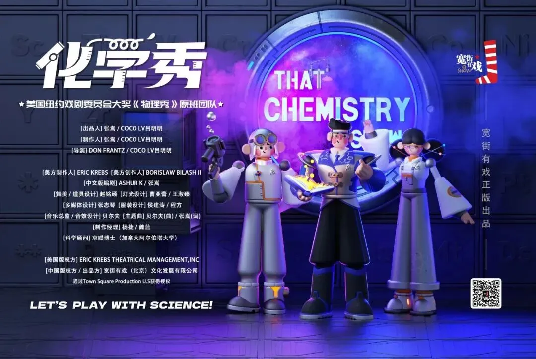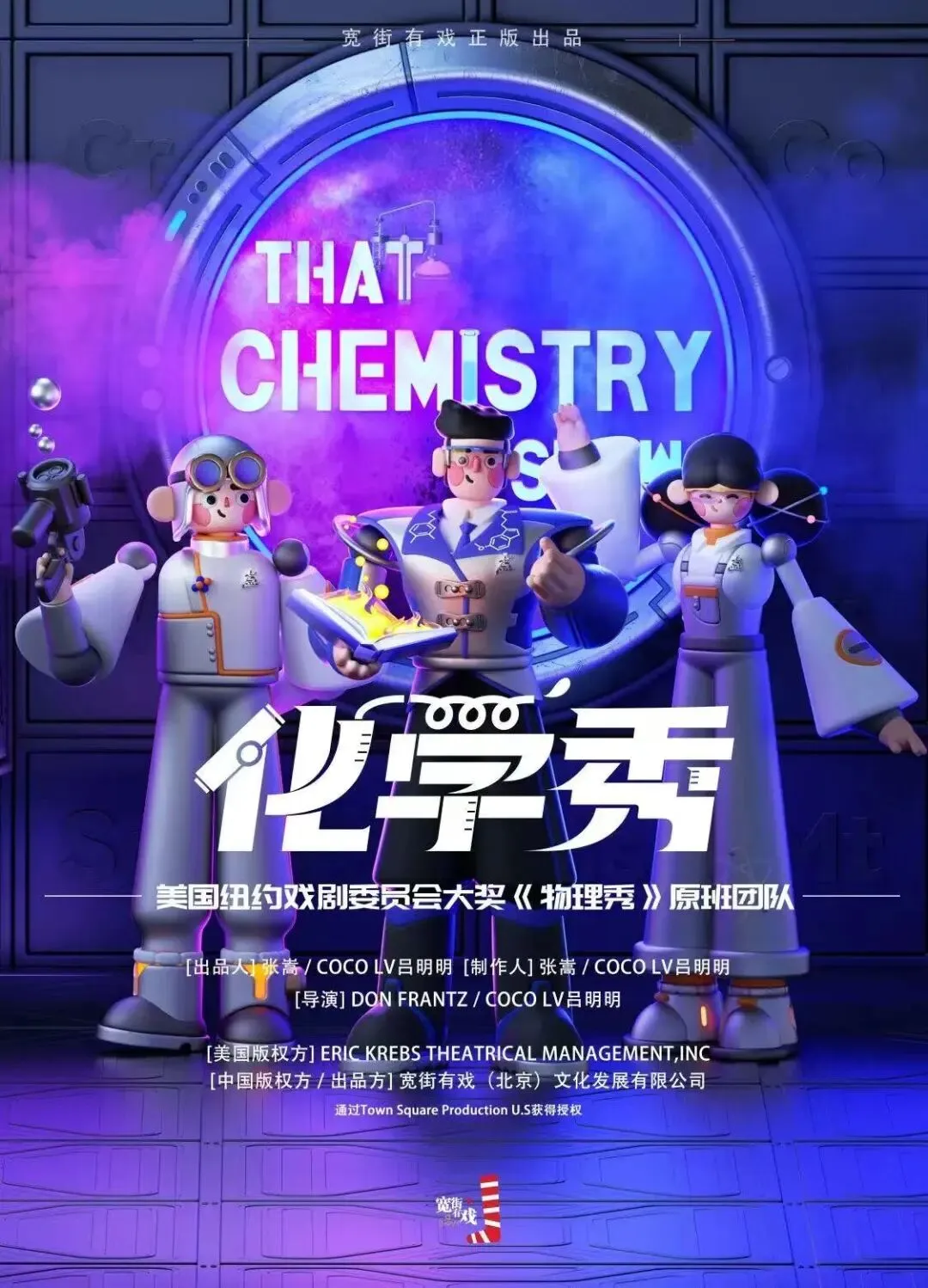 2023年,《化学秀》在二十余个常见化学实验的基础上,通过幽默丰富的舞台表现,趣味讲解化学原理,为大家在戏剧舞台上展现这个由化学主宰的世界。