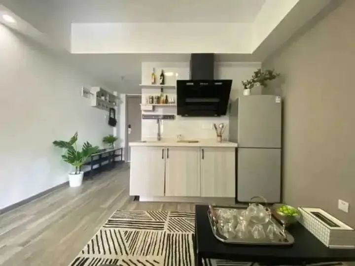 一房一卫,冰箱,空调,油烟机,热水器,衣柜,洗衣机,透光透风巨好,太阳能晒进来又不至于晒到卧室。