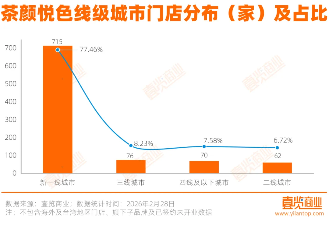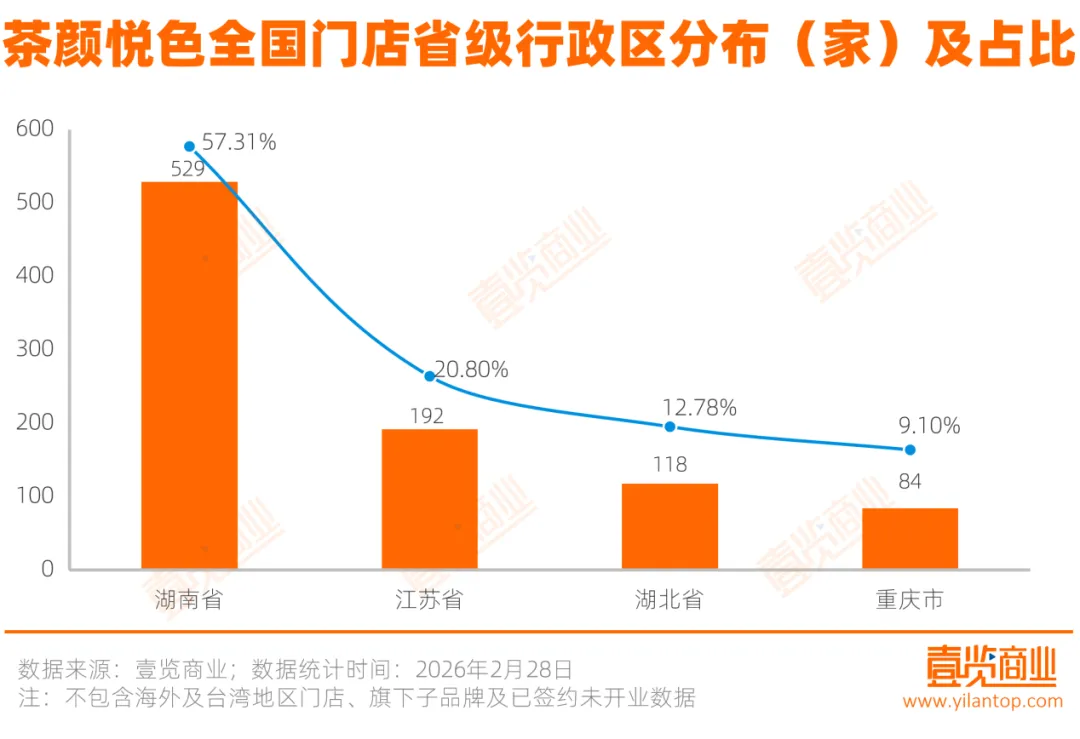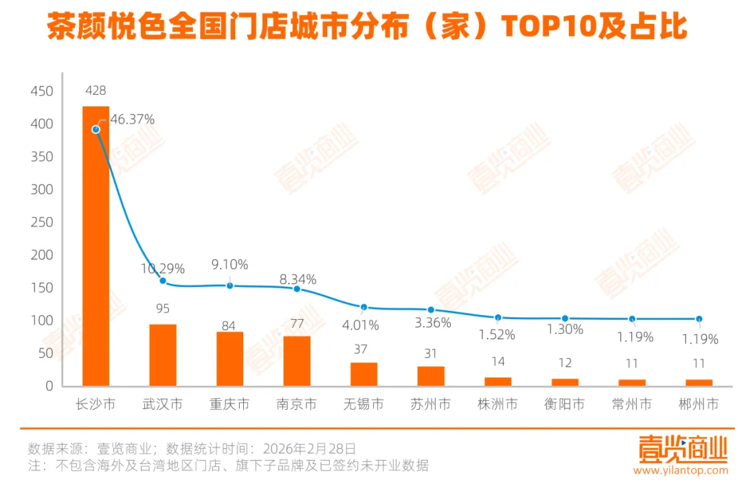 这种谨慎背后,是茶颜悦色高度依赖区域市场的门店布局。截至2026年2月,茶颜悦色共有923家门店,门店重点分布在湖南长沙。