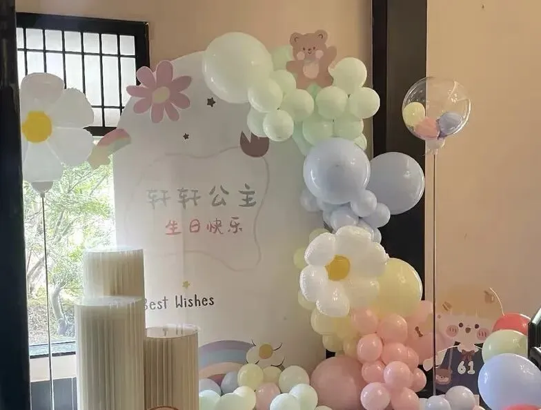 无论是当前最流行的韩系简约风、新中式风,还是童话般的城堡风,他们都能精准把控。特别是他们引以为傲的气球布置,在汪汪派对的手中,气球不再是廉价的装饰品,而是变成了艺术装置。每一个弧度、每一组配色,都透着高级感。