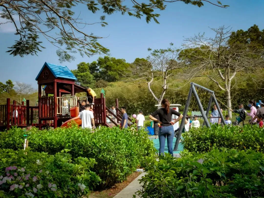 公园里还散落着儿童游乐设施和露营草坪,是家庭出游的绝佳选择。