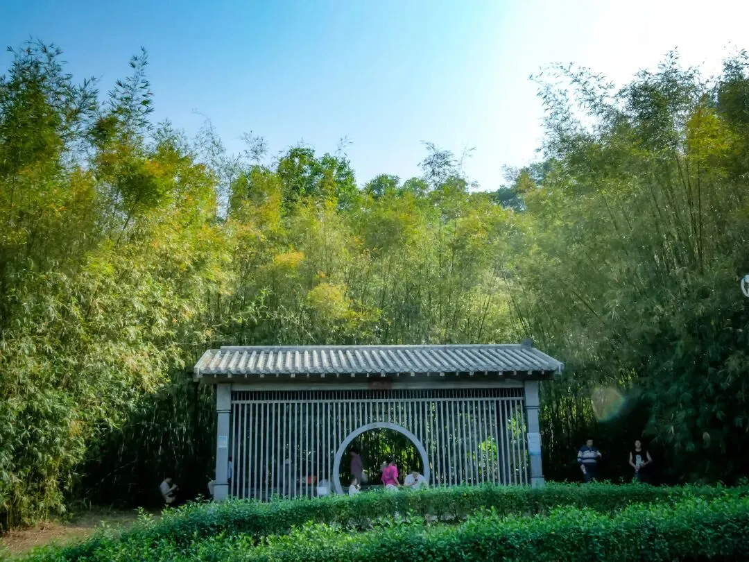 孔雀造型的三角梅花圃,拱形花廊随处可见,往里走“幽篁亭” 被竹林三面环抱,清幽静谧,瞬间让人想起王维“独坐幽篁里”的诗意。