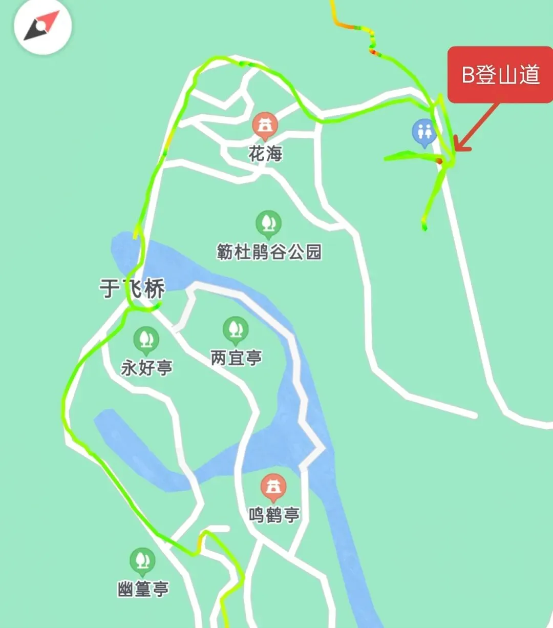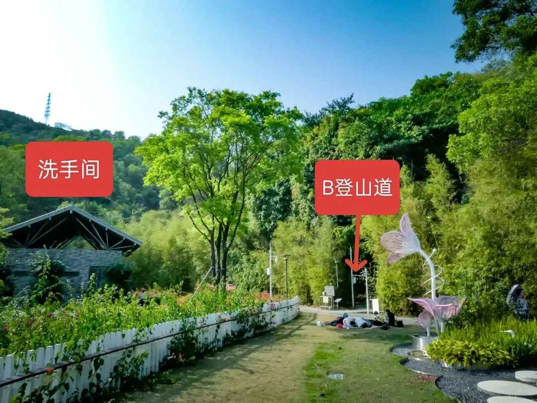 不知不觉闲逛了近2公里,在花海旁的洗手间处,我找到了B登山道的入口,真正的登山,就此开始。