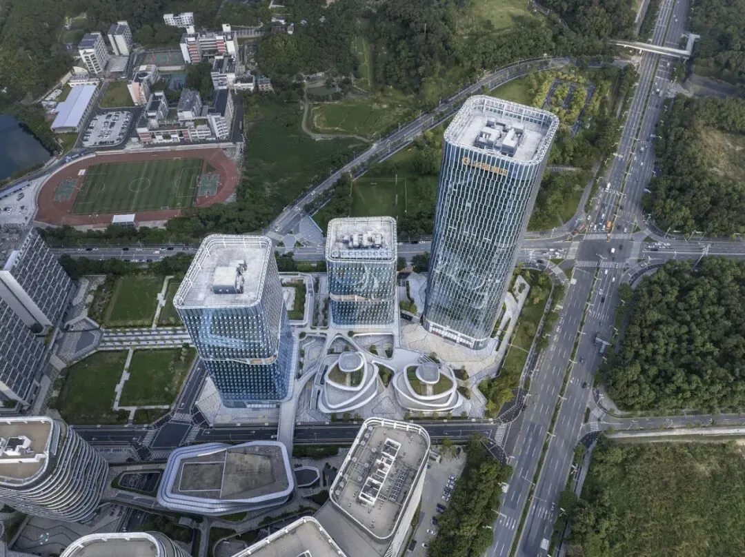 由AUBE欧博设计主持设计的光明华强科技生态园(六期)位于深圳市光明科学城核芯区,是光明区打造“世界一流科学城”的重要产业载体。光明华强科技生态园以“3+3+1”产业集群为基石,聚焦人工智能、高端医疗器械、生物医药等前沿领域。