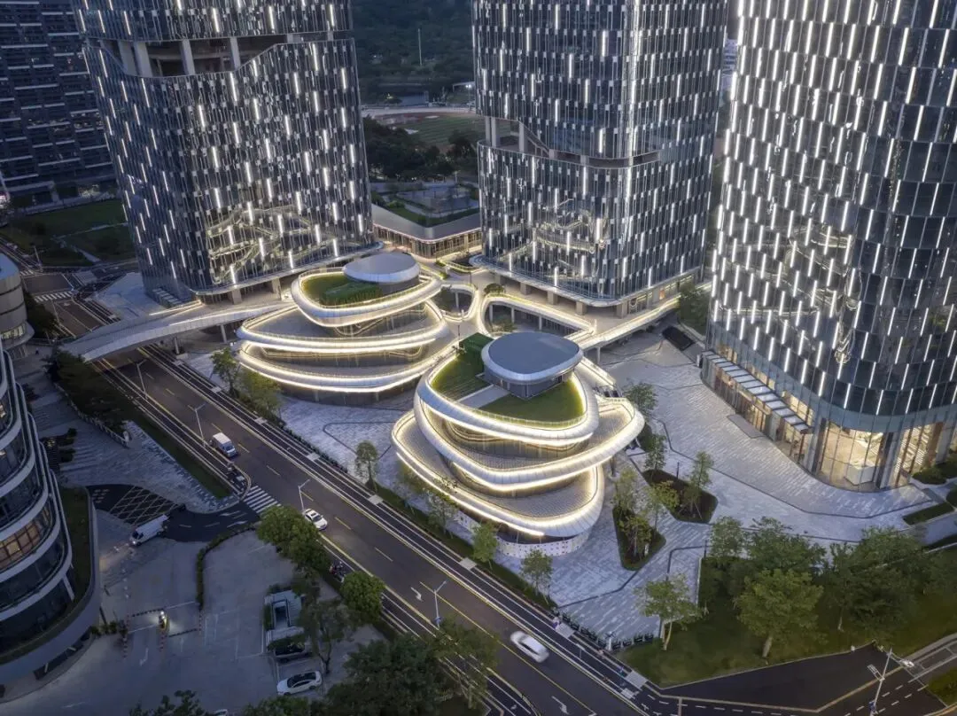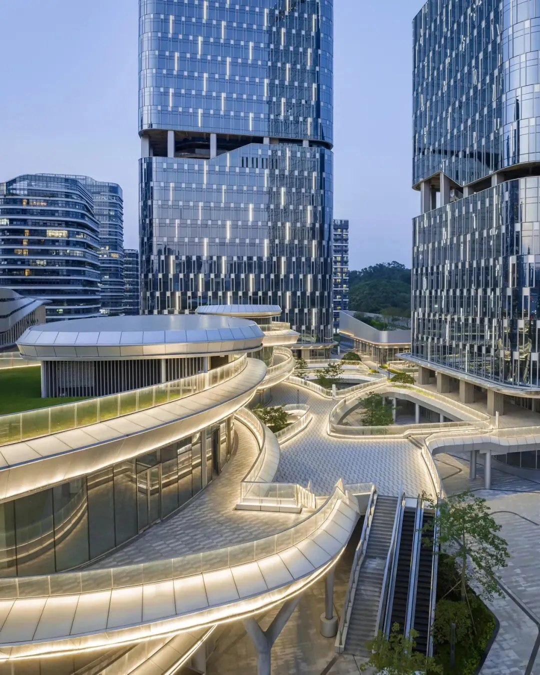 从与山体共生的规划布局,到多维互动的空间设计,再到文化与科技融合的立面表达,光明华强科技生态园(六期)不仅是一座产业园区,更是一座生态、智慧、开放的城市新空间。它以建筑为媒介,连接自然与城市、产业与生活,成为区域城市更新与产业升级的视觉象征,也为“文化 + 科技”的产业生态,提供了一处生长与绽放的理想土壤。