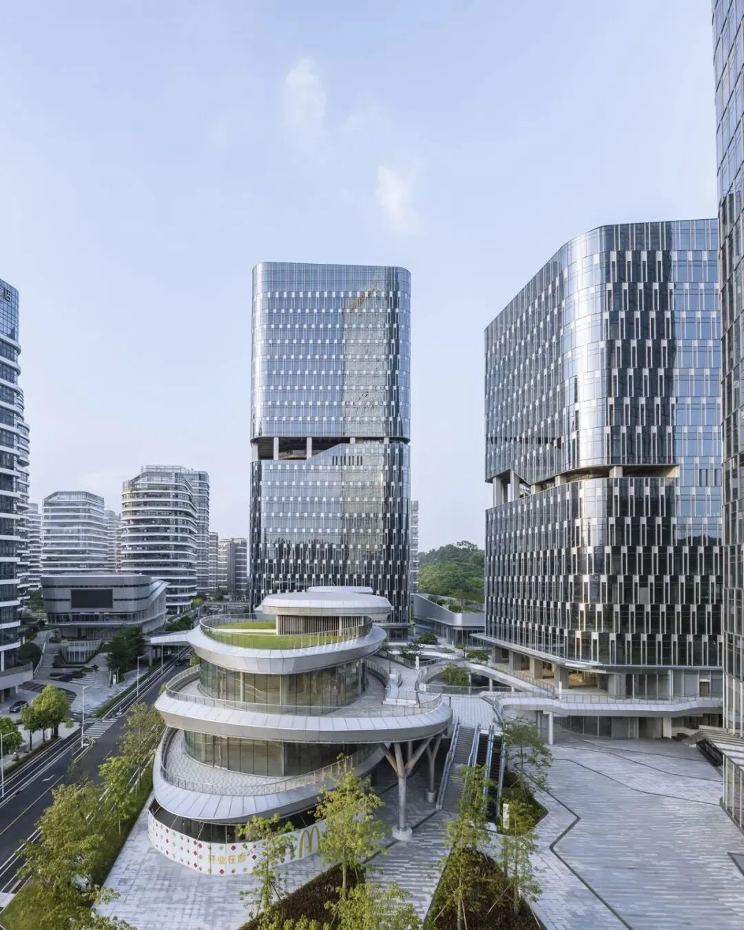 西侧规划的两栋特色商业,以小体量、宜人尺度的空间设计,填补了园区多元生活需求,让工作与休闲、产业与消费在此形成良性互动。
