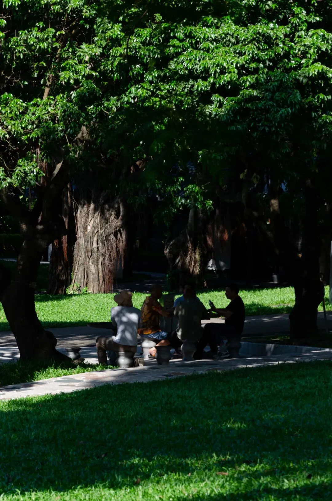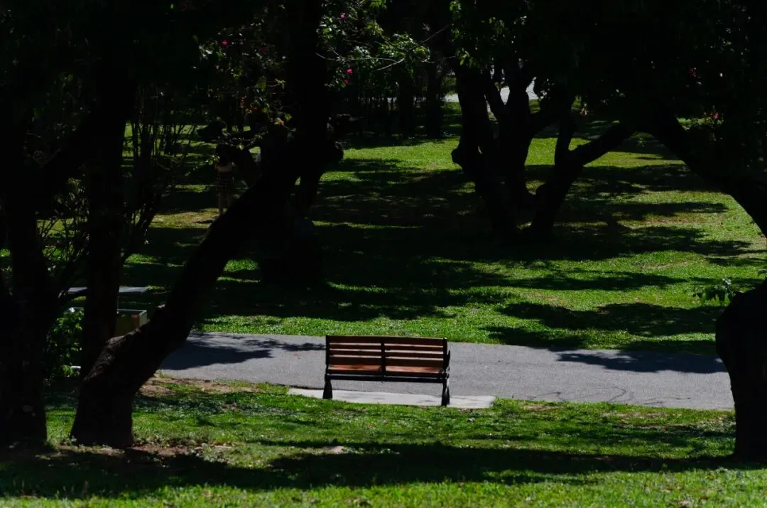 ✔ 草坪光影区(座椅附近)重点不是座椅,是树叶漏下来的光
