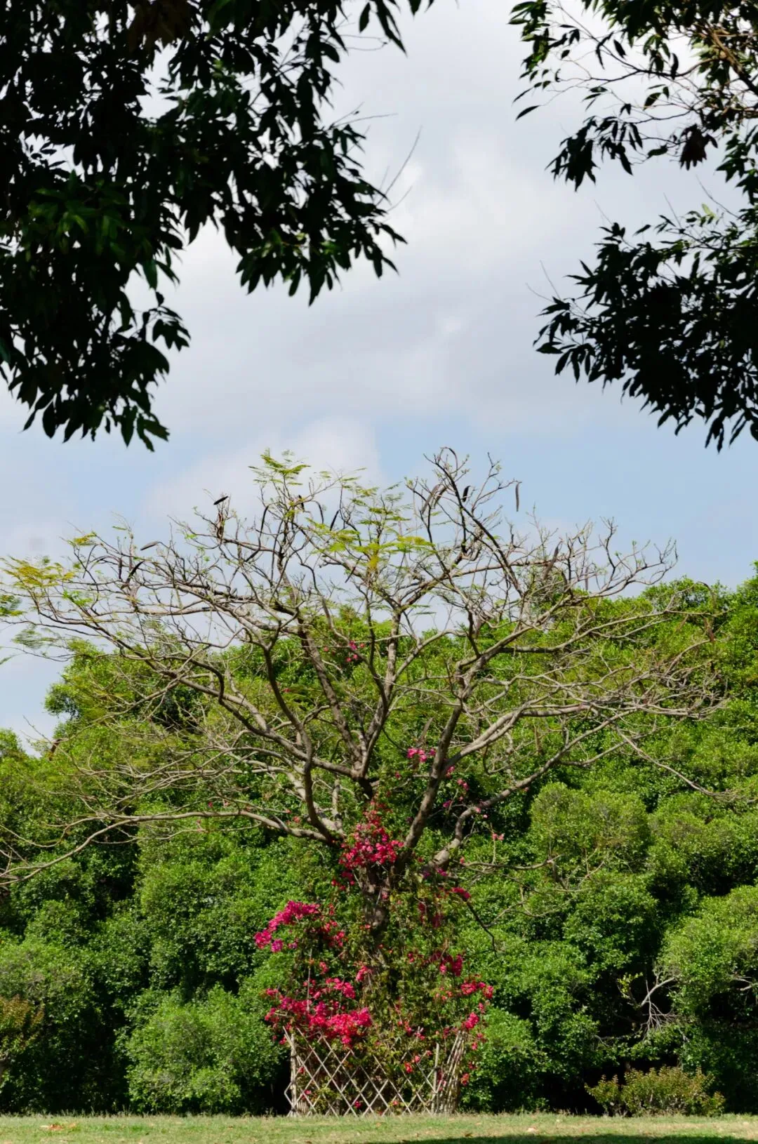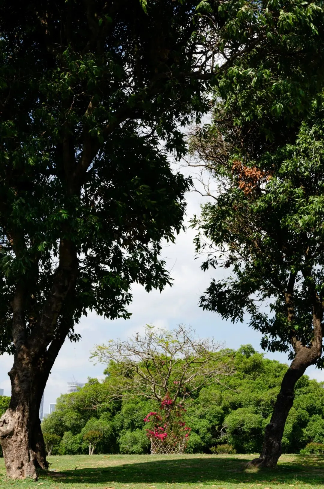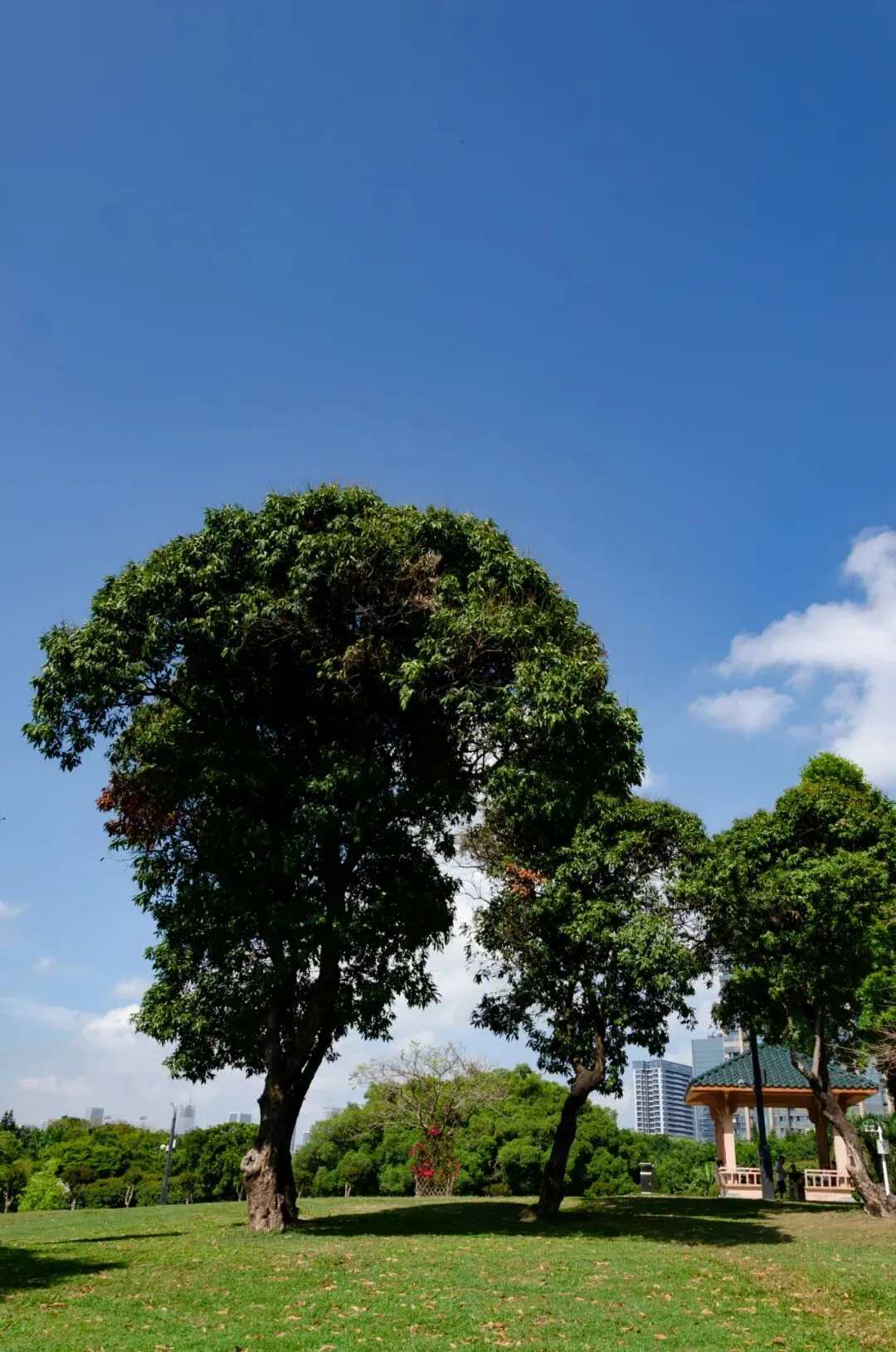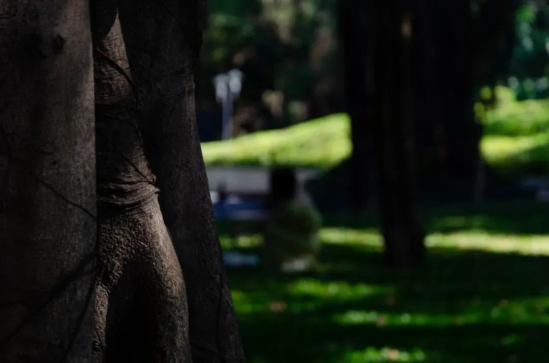 树冠铺展开来像一整片“绿色屋顶”,把阳光筛成柔软的光斑
