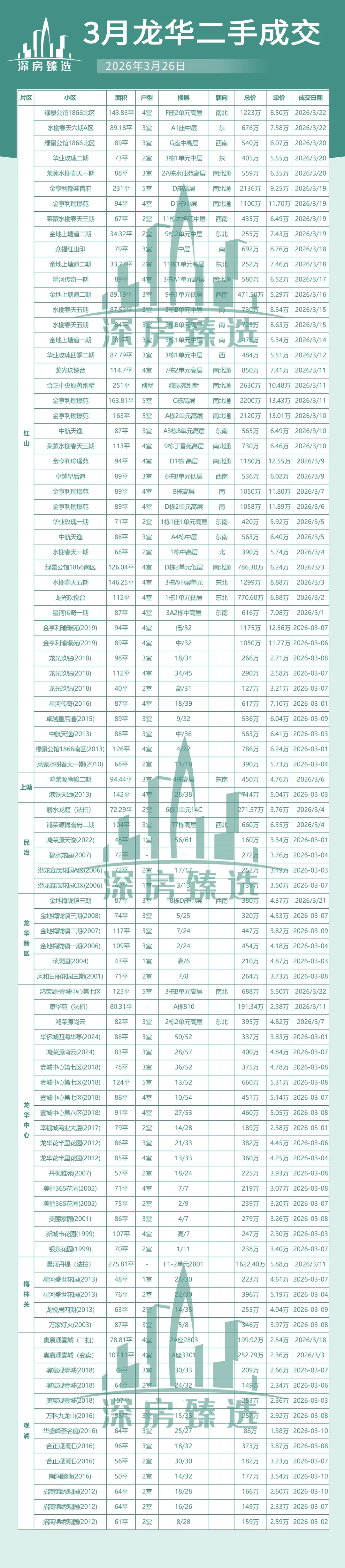 像华润城3月以来已经成交了十几套,其中润玺一期175平4房,最新成交价2850万,相比去年底同户型(2250万),3个月时间上涨了约600万。