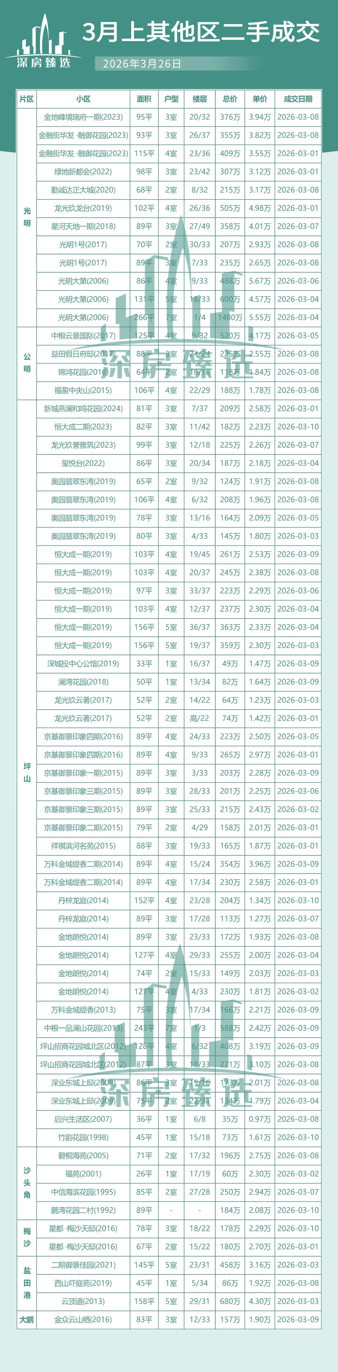 深圳所有新房开盘信息都会在上面发