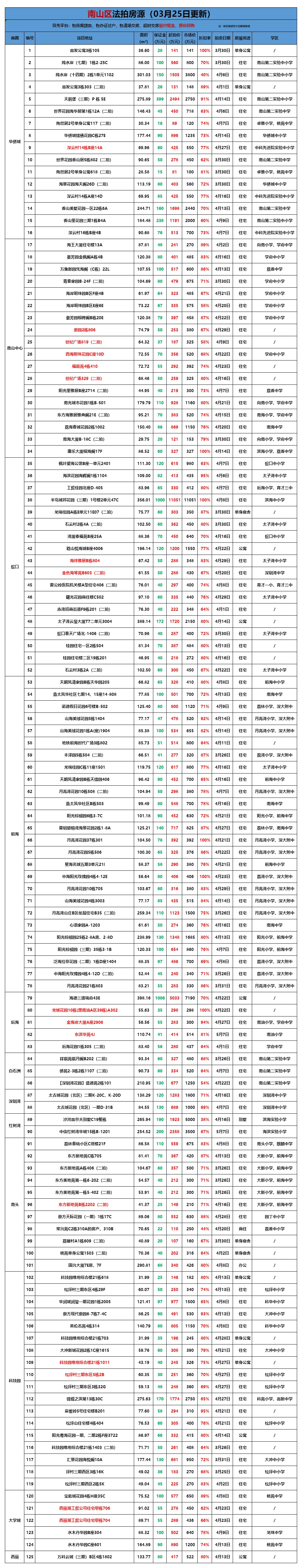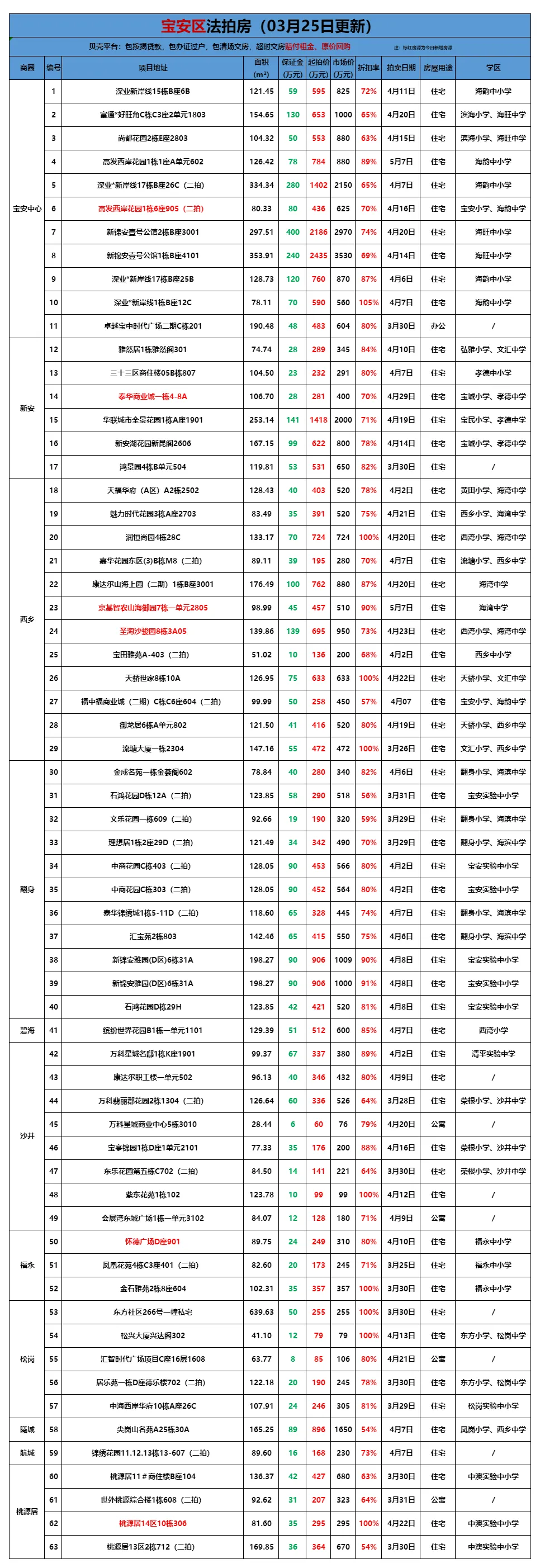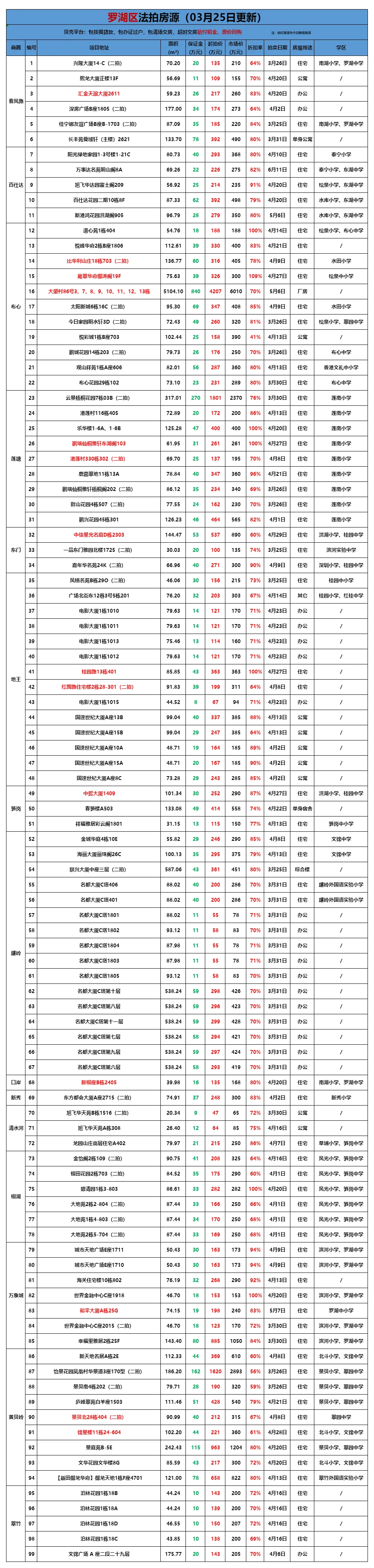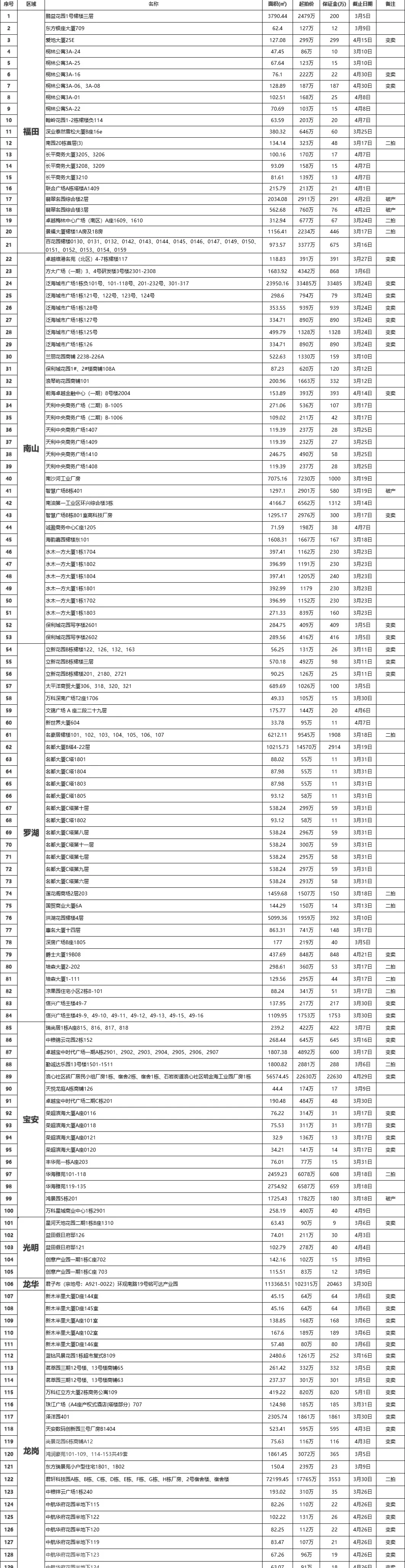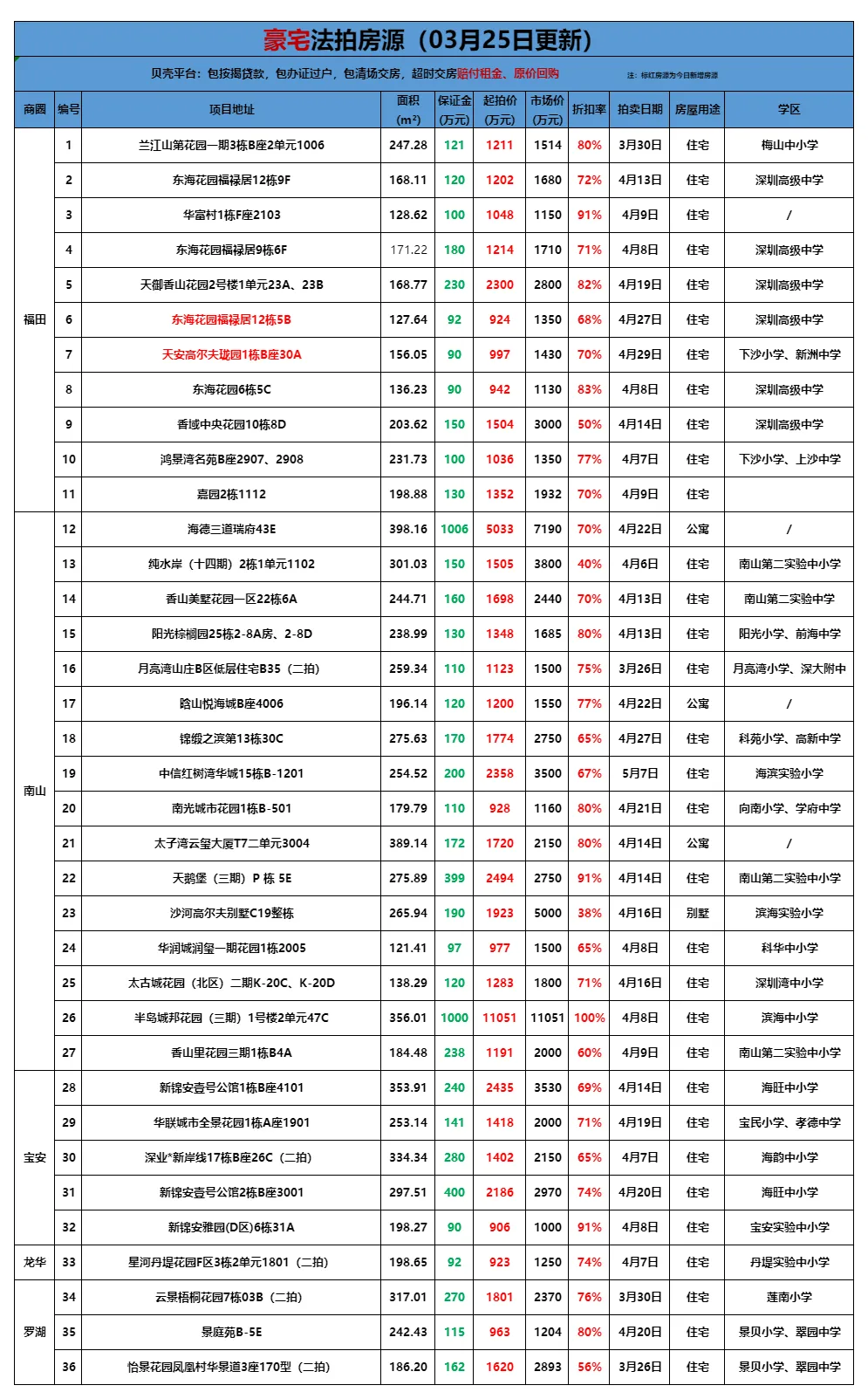 >贝壳(深圳)交易服务中心法拍房源全量表(更新至3月25日)