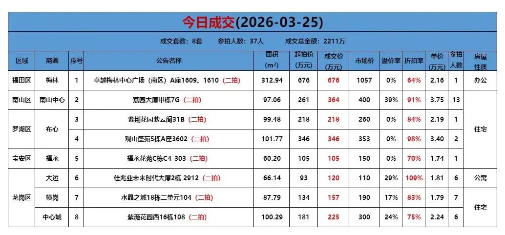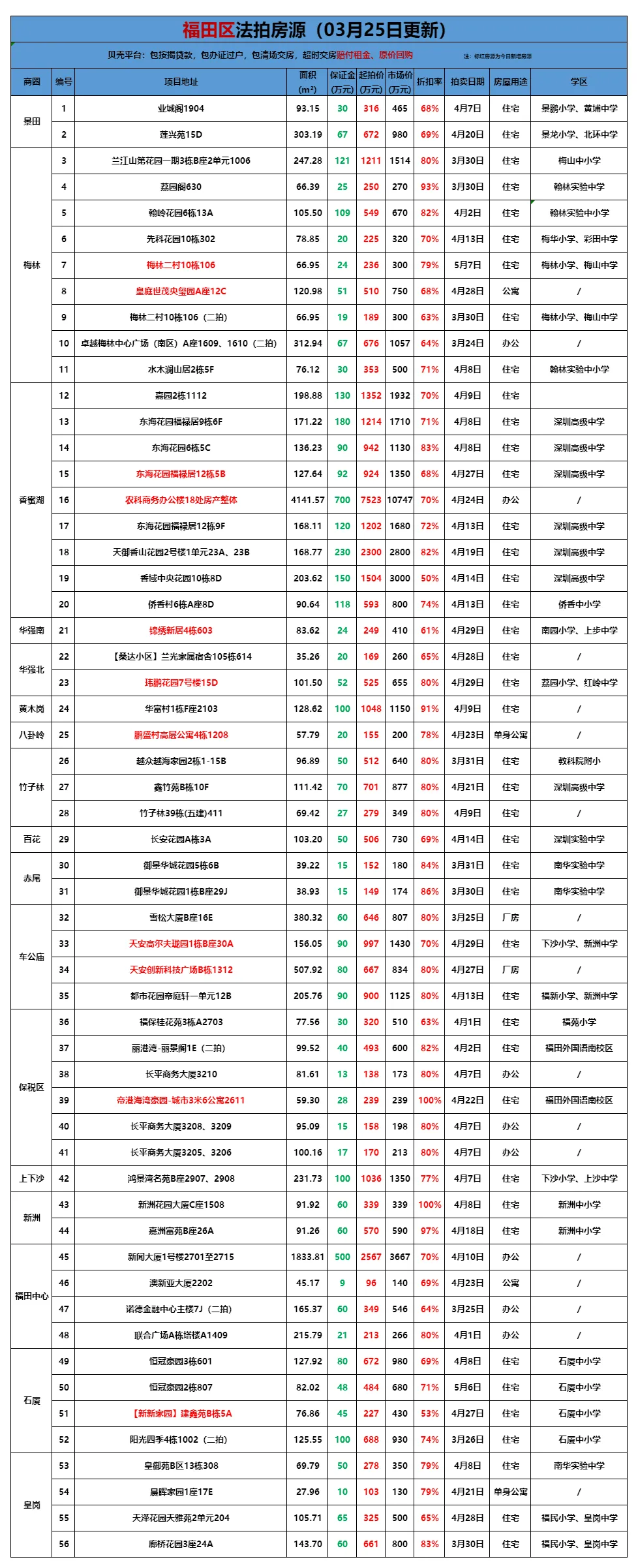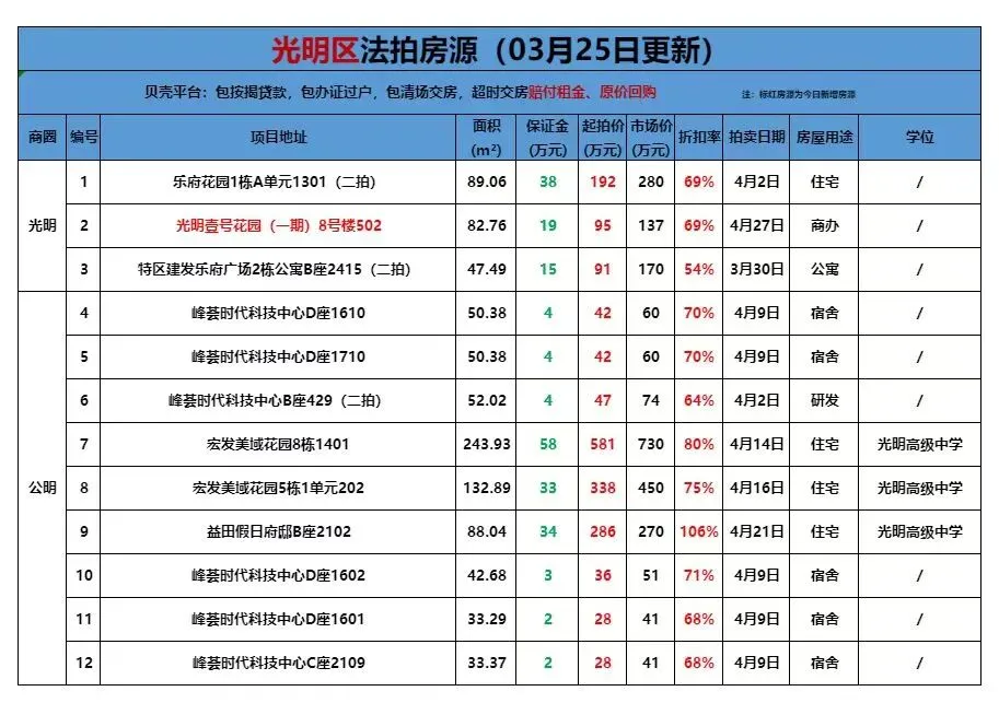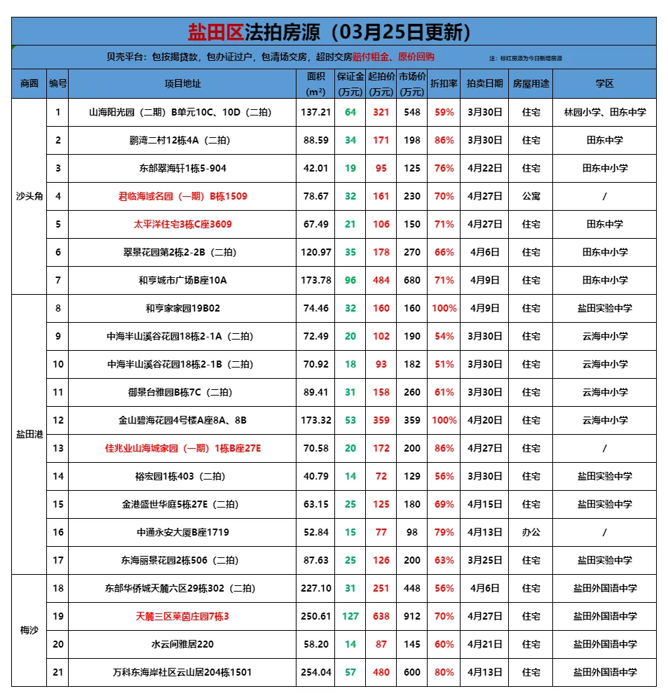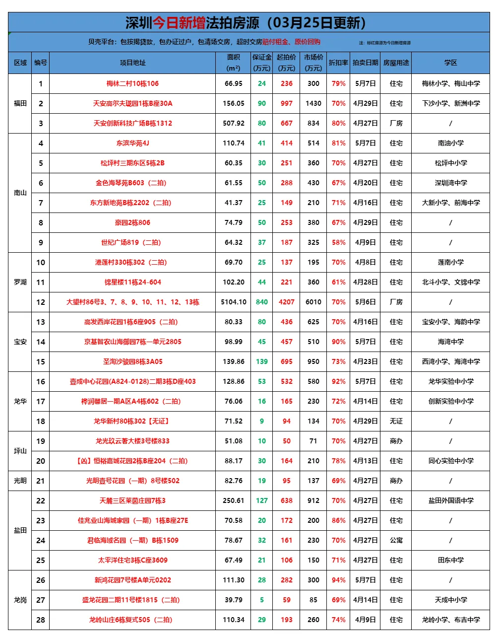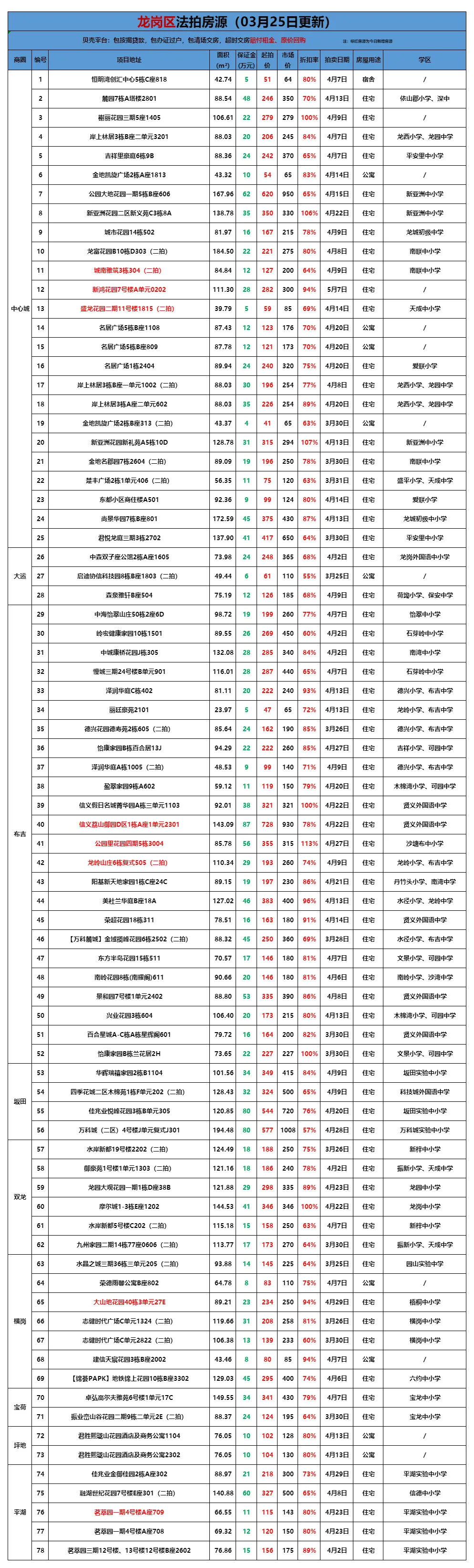 >贝壳(深圳)交易服务中心法拍房源全量表(更新至3月25日)
