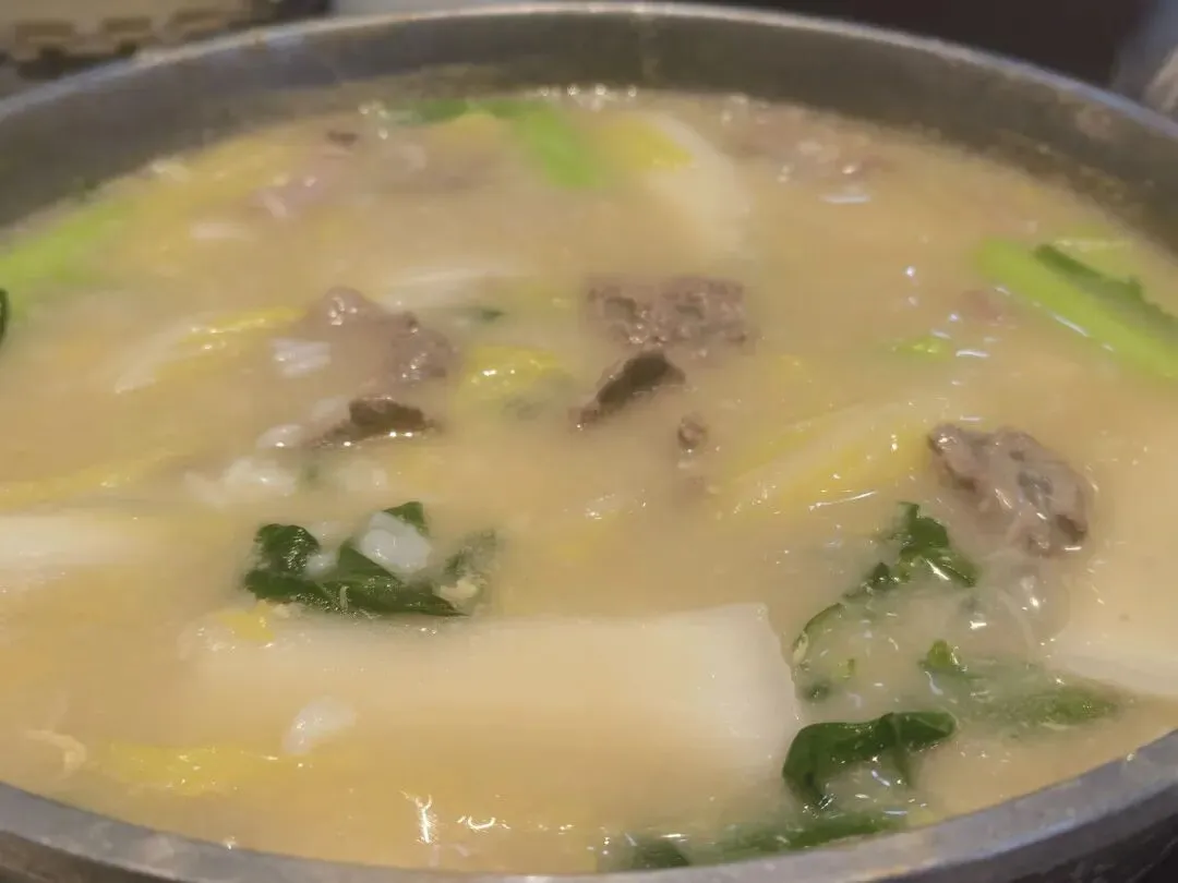 走累了来一顿粥底火锅,可好吃了。开始吃跟普通火锅没什么区别,就是把食材先后放入火锅涮熟蘸料。吃到后期要把所有荤的、素的食材和熟米一起在火锅里煮,浓稠的汤汁,清润绵柔,不抢食材本味。