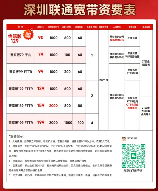 深圳联通宽带套餐全解析
