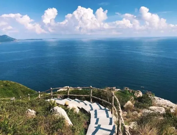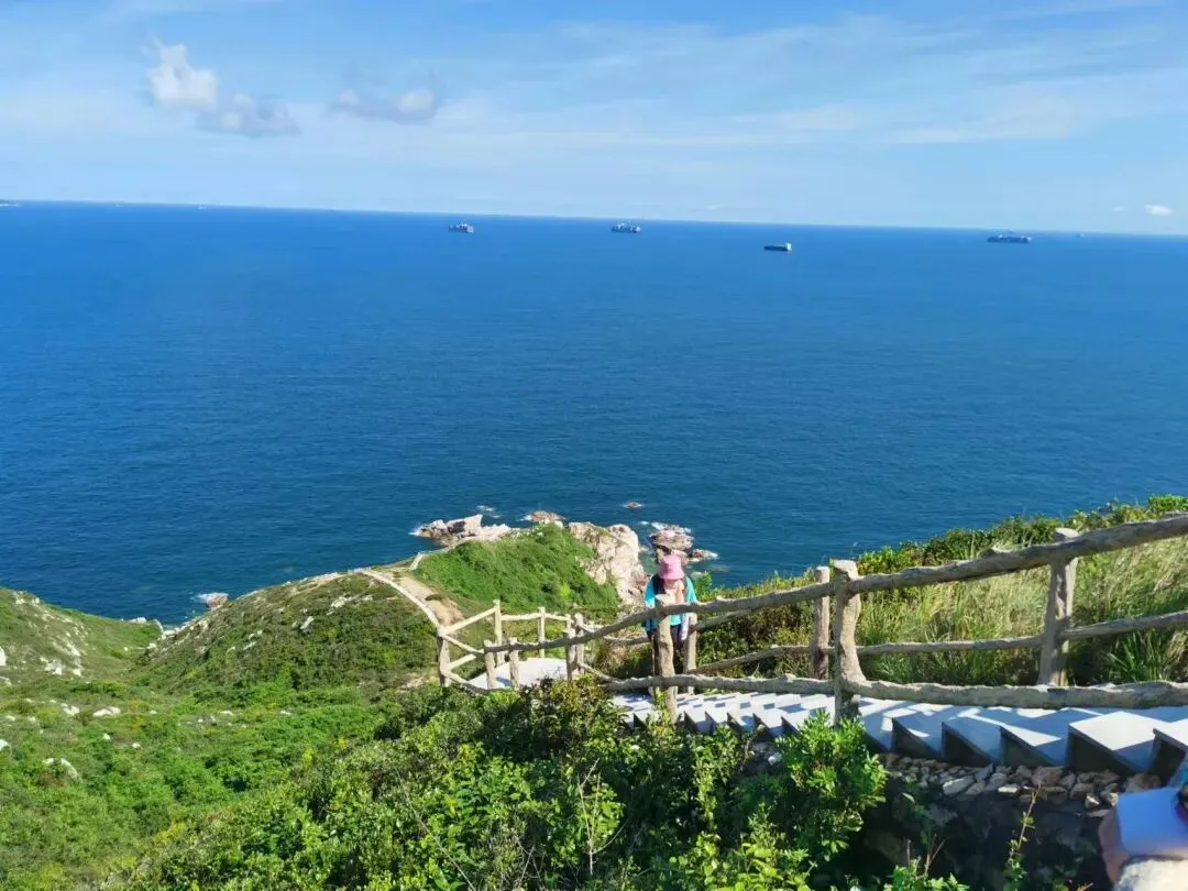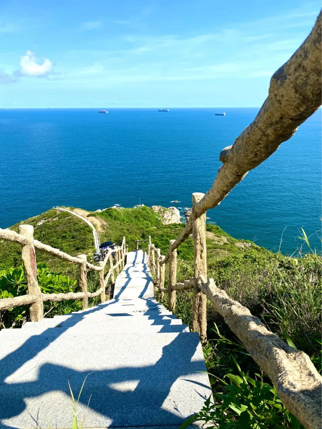 从海边一路延伸到天文台的海天栈道,海天一色风景一流,目测有500到600左右的台阶数,半小时左右即可到达天文台。站在悬崖栈道上吹着海风,回望这海天一色的山海奇观,感觉世界都是自己的,真的很美。
