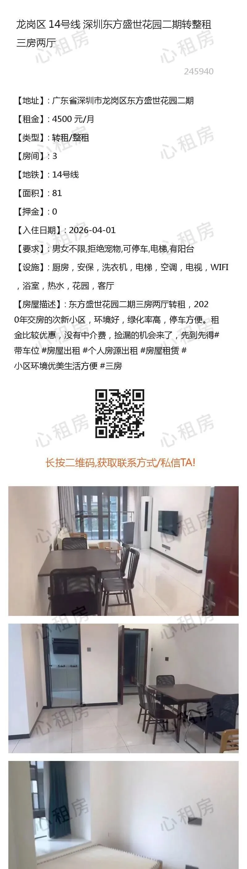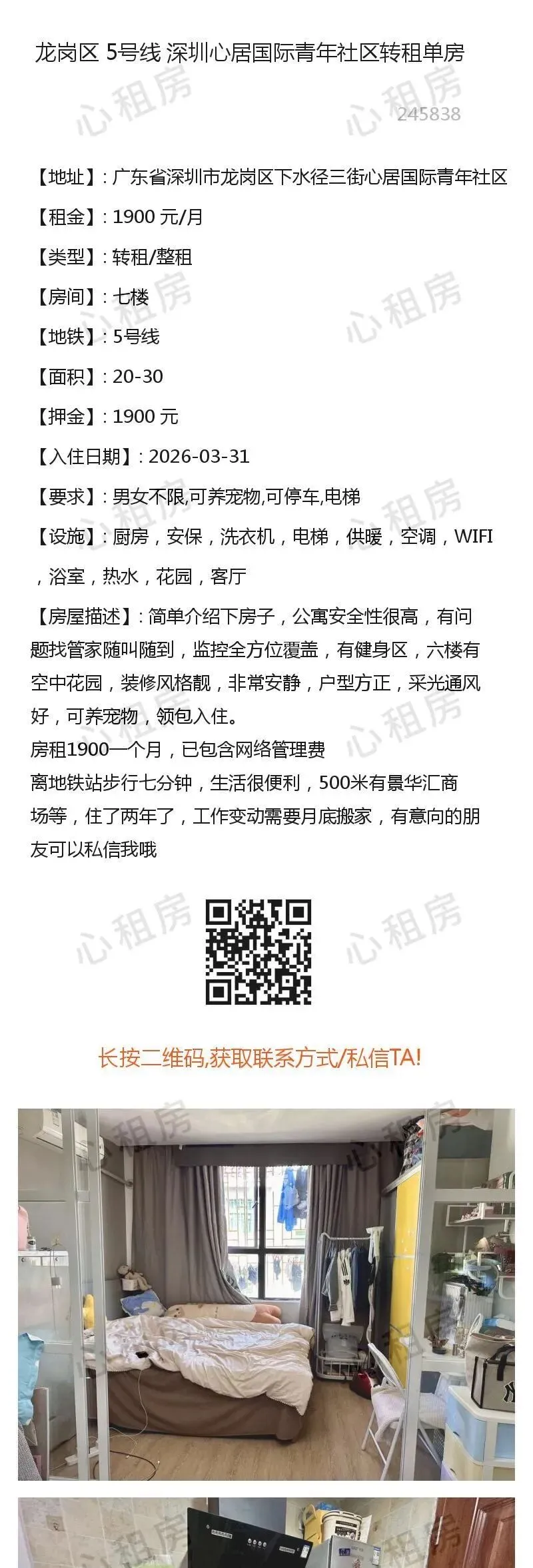 深圳租房【龙岗3则】房源①:5号线深圳龙岗转租单房1900元/月;房源②:.........