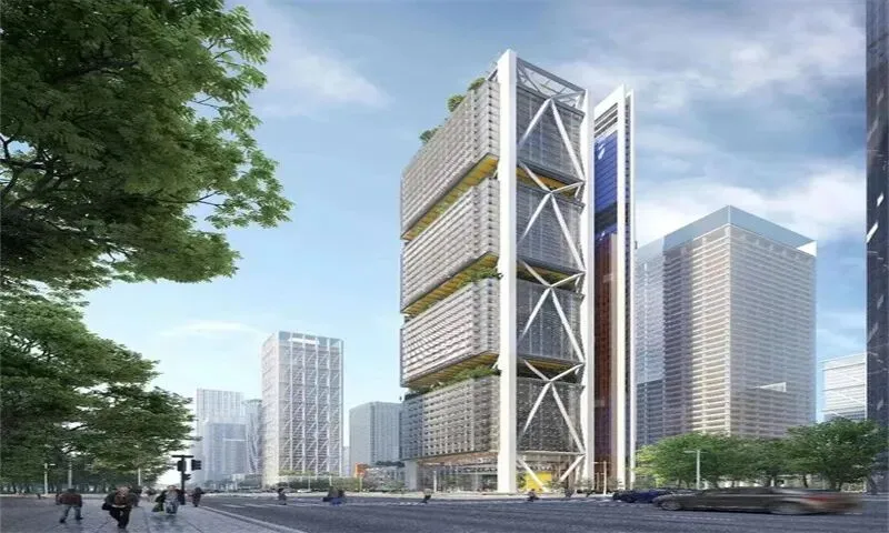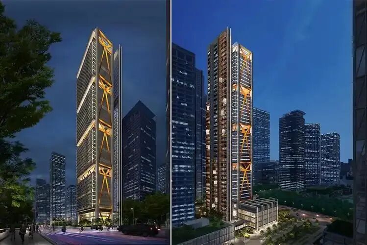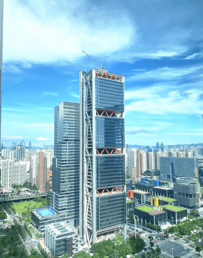 设计亮点✅ 无柱大平层办公:采用“带联系桁架的巨型支撑框架-偏置核心筒”结构,实现室内完全无柱化,视野开阔、布局自由。✅ 空中花园系统:每9层设10.2米高空中花园(13F/24F/35F/46F),专属电梯直达,打造非正式会议、社交休憩的垂直绿洲。✅ 古铜色幕墙:LOW-E玻璃搭配外露钢结构,致敬建滔产业基因,塑造前海独特天际线。✅ 智能楼宇系统:人脸识别门禁、双回路供电、楼宇自控系统,保障高效安全运营。