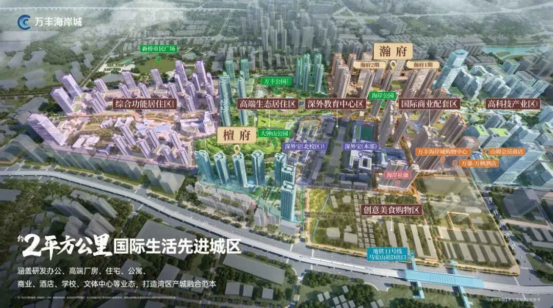 万丰海岸城檀府位于宝安西部城市中心,步行约300米直达地铁11号线马安山站,快速通达南山、福田。项目主推建面约89–169㎡新规三至六房,空间使用率高、享头排公园景观。坐拥海岸城商业、山姆、深外宝本部等全维成熟配套,宜居与价值兼备,是西部改善置业优选。