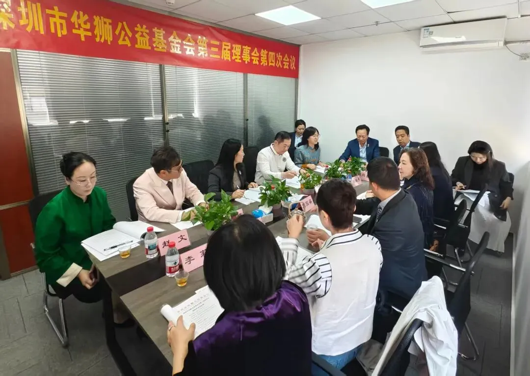 2026年3月13日,深圳市华狮公益基金会第三届理事会第四次会议在福田区天吉大厦311A召开。与会理事审议通过《2025年度工作报告暨2026年工作计划(草案)》《2025年法人述职报告(草案)》《2025年度财务工作报告(草案)》《深圳市华狮公益基金会中长期发展规划(草案)》、秘书长职务任免调整的议案及基金会各项制度制定及修订等事项。