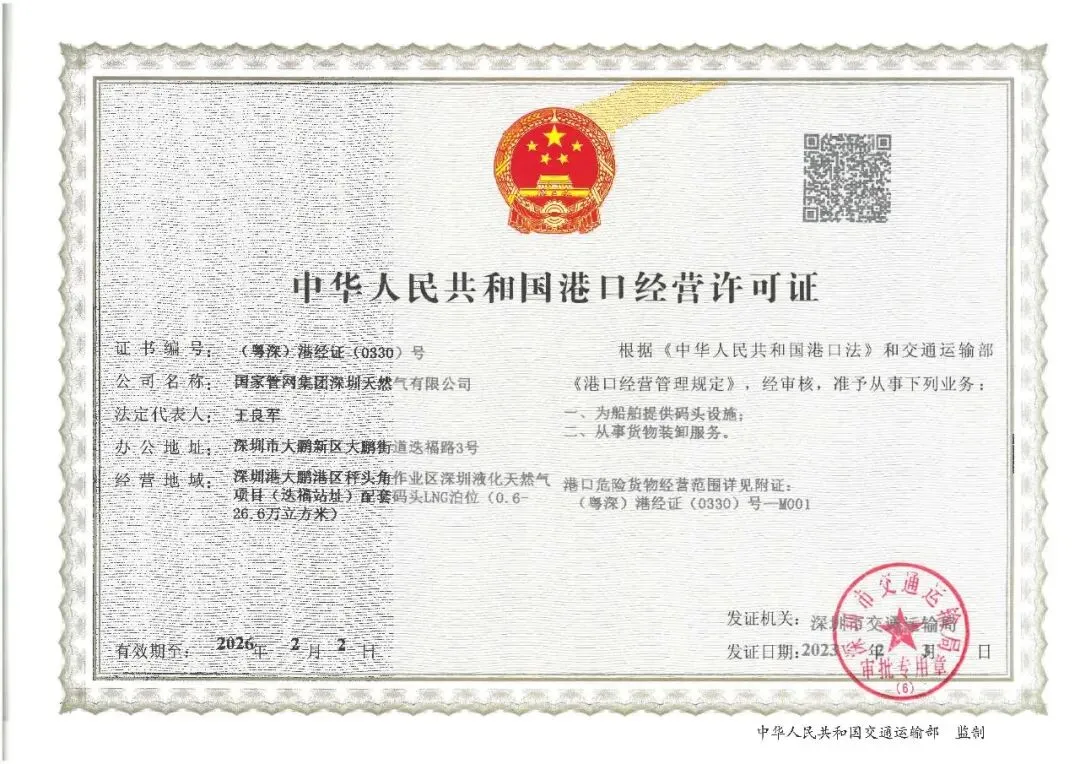2月初,深圳LNG保税LNG装船服务涉及的码头改造项目通过工程竣工验收并取得了相关经营许可证,标志着项目码头靠泊能力正式获批向下兼容至6000立方米,进一步增强深圳LNG接收站的核心竞争力。