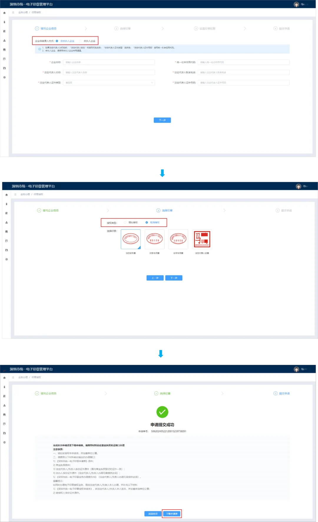 深圳市统一电子印章管理平台与营业执照系统相关联,如果企业的法定代表人名称、法定代表人证件号、企业名称、企业类型(内外资转换)发生变更,印章平台会同时注销原电子印章。