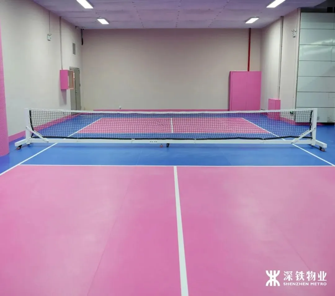 匹克球场按标准尺寸铺设,地面弹性适中,跑跳起来膝盖无压力。