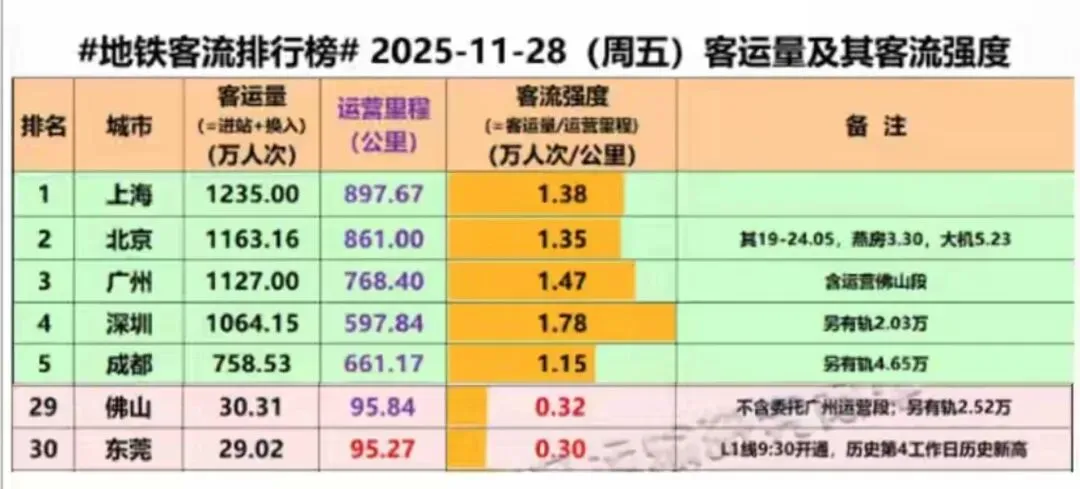 2025年深圳地铁客流32.9亿,广州33.2亿,日均客流只差10万人,随着更多新线路的开通,反超只是时间问题。