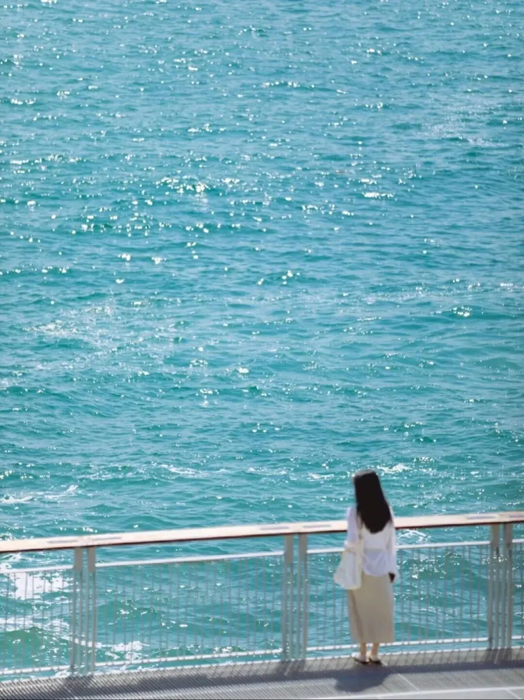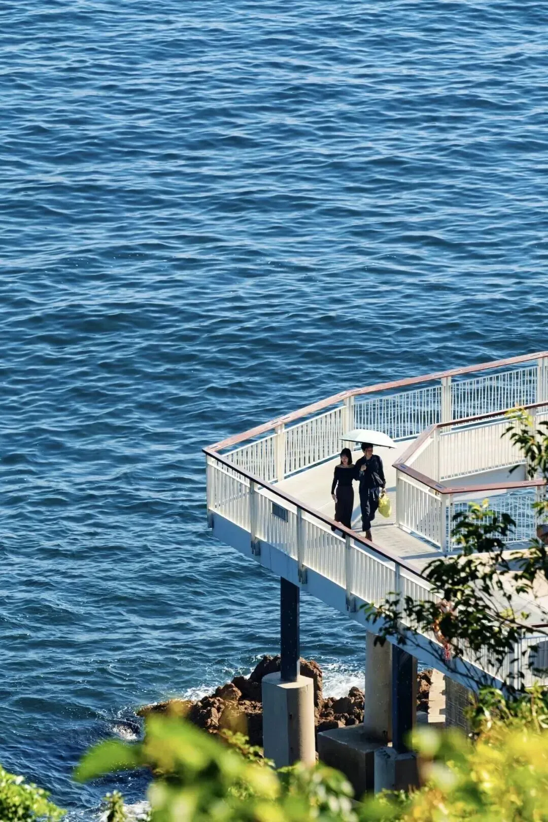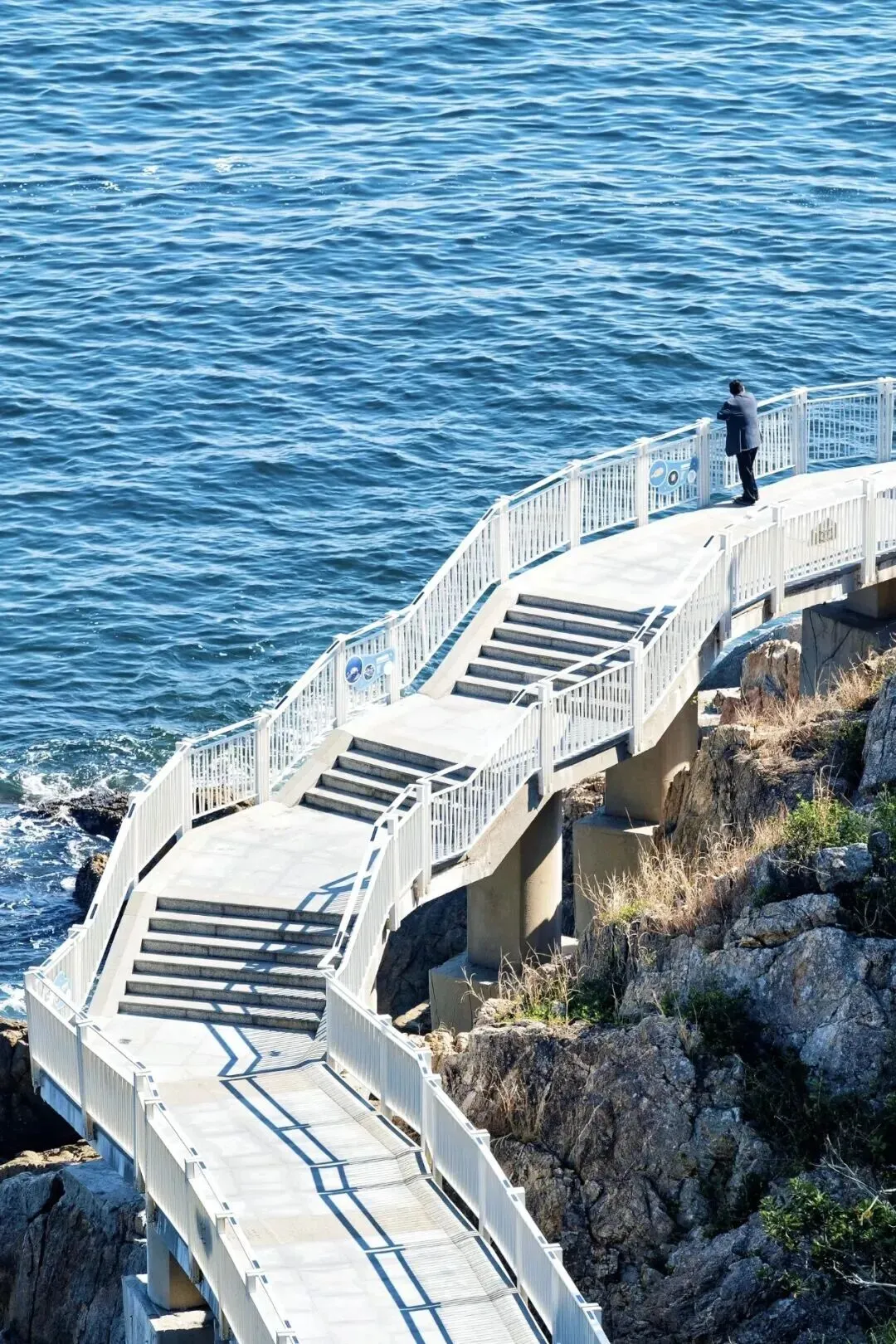 15:00 抵达小梅沙栈道,一望无际的蓝色海面波澜壮阔。