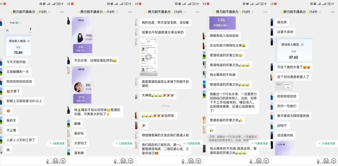 我看到了真实的普通人:团队里最多的,就是像我一样的宝妈、上班族。她们晒每天带娃间隙挣出的几十、几百块生活费、每天分享喜悦和经验。那种“稳稳的增值感”,太有吸引力了。