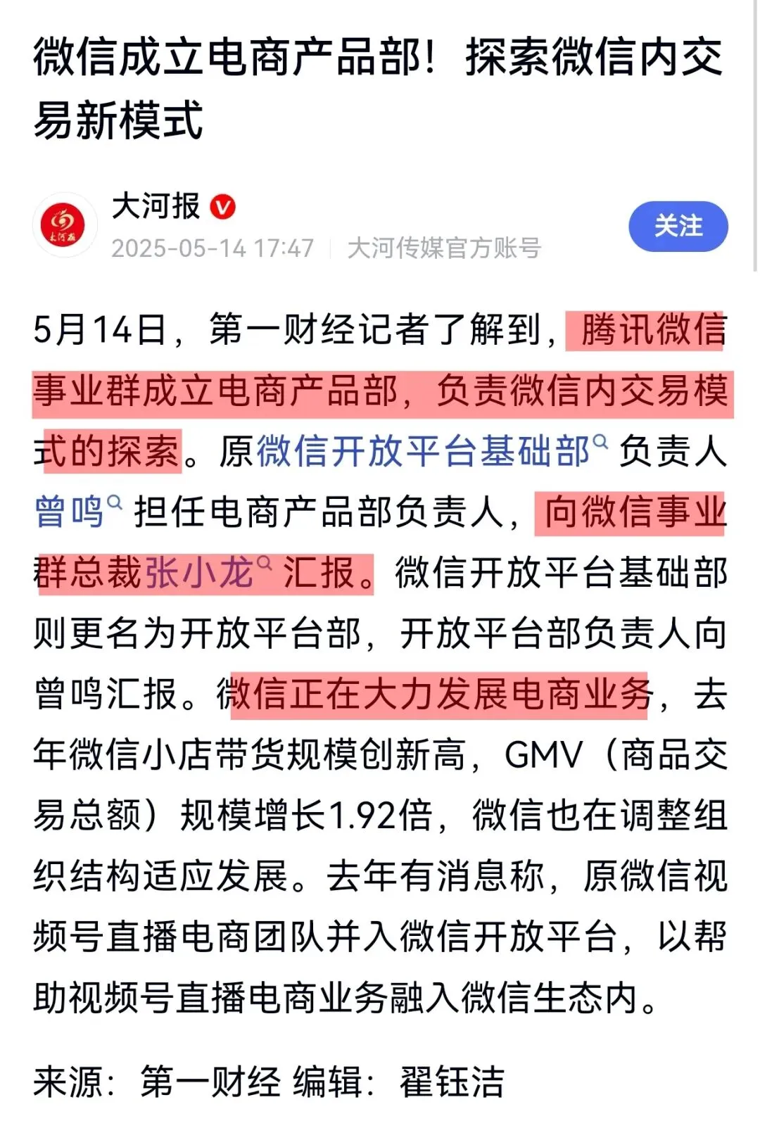 我去查阅了关于微信电商、微信小店、巨星心选的相关资料。我了解到,腾讯官方已发表声明,腾讯未来五年的重要战略聚焦点,就是微信小店。