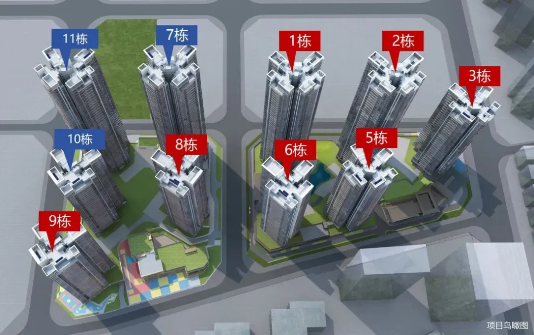 整个项目规划户数为1992户,其中东区1016套,西区976套,全部都是规划的商品房,涵盖了多种户型设计。其中,6栋、8栋、9栋和10栋的高层住宅采用2梯5户设计,3栋和5栋为2梯6户,而1栋、2栋、7栋和11栋的超高层住宅则采用3梯6户设计。