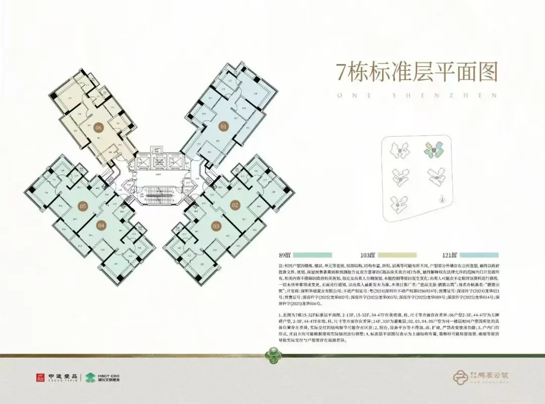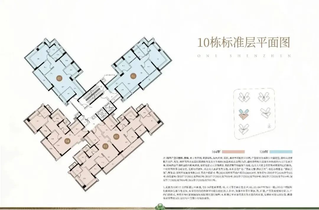 龙华梅林关,中建鹏宸云筑在2024年12月6日首次推售东区3/5栋,后面多次加推东区6栋、1栋、2栋,西区8栋、9栋、7栋、10栋,面积有81㎡的3房2卫,89-91-102-107-118-120-123-126平的4房2卫,139㎡的4房3卫户型,共计入市房源1739套房源,备案均价约6.14万/㎡,备案单价5.56-6.9万/㎡,总价450-928万/套,合同约定在2028年3月份带高品质精装交房,配置全屋东芝中央空调!鹏宸云筑是中建3局全资子公司“中建壹品投资发展有限公司”跟“湖北文旅园区建设发展集团有限公司”联合开发,两者均为国有企业背景,也是其在深圳打造的第1个楼盘。该地块是在2024年2月29日挂出的A808-005土拍地块,建筑面积216570㎡,竞得价格是51.79亿元,楼面价23914元/㎡,是龙华近10年来最大的纯商品房土拍地块,总共1992套,全部规划商品房,没有任何回迁房、安居房、共有产权房、公租房,新规超100%得房率。鹏宸云筑在2024年12月6日入市以来,共1739套房源,至今整体也已经销控超1300套房源,去化率高达75%,还有约440套房源在售。当下主力房源还是在后面加推的7栋跟10栋,折后均价5.62万/㎡,折后单价5-5.81万/㎡,总价在517-675万/套。89㎡的4房2厅2卫,折后总价455-502万/套,折后单价5.04-5.55万/㎡。104㎡的4房2厅2卫,折后总价517-601万/套,单价约5-5.81万/㎡。