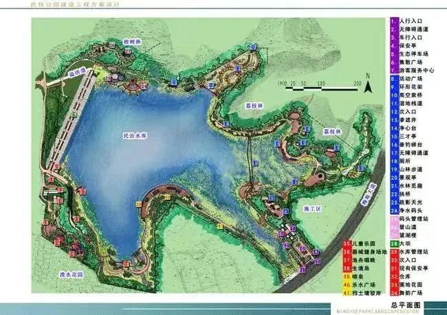 项目南边是民悦公园和民治水库,目前能看到民治公园建设工程方案设计图流出。