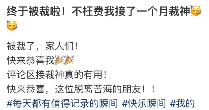 但现在,“被裁”,却成了很多人的“盼头”。