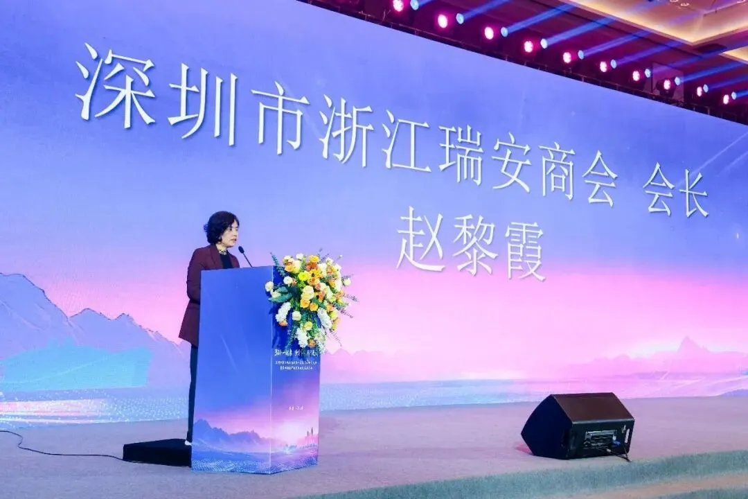 深圳市浙江瑞安商会会长赵黎霞在致辞中表示,过去一年商会在各界支持下平台日益坚实,“瑞商之家”氛围愈发浓厚,商会将持续打造“为您代言”服务品牌,深化网格化管理,赋能青年瑞商创新发展,践行瑞商“义利并举”的责任担当。