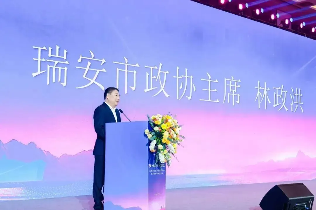 瑞安市政协主席林政洪代表家乡四套班子向在深瑞商致以亲切问候,希望商会继续做好贴心的“娘家人”、归哺的“领航员”、畅达的“连心桥”,推动“深圳创新”深度赋能“瑞安智造”。