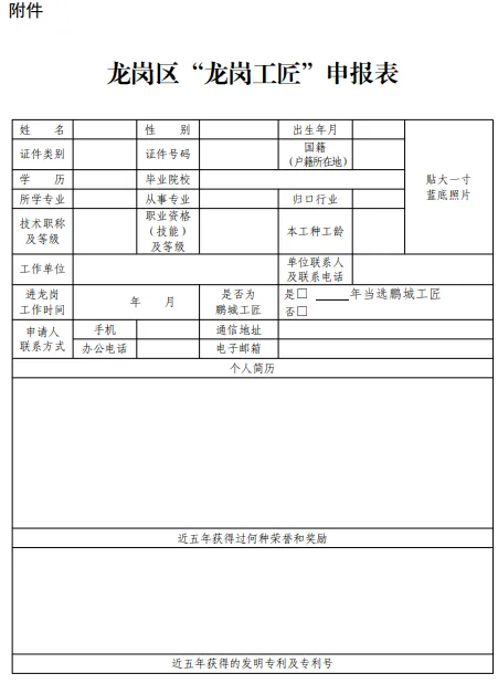 《龙岗区“龙岗工匠”申报表》《龙岗区“龙岗工匠”申报信息采集表》和申报人事迹材料电子版整理压缩,命名为“申报龙岗工匠+申报人姓名”,发送至邮箱lgjp28219051@lg.gov.cn。