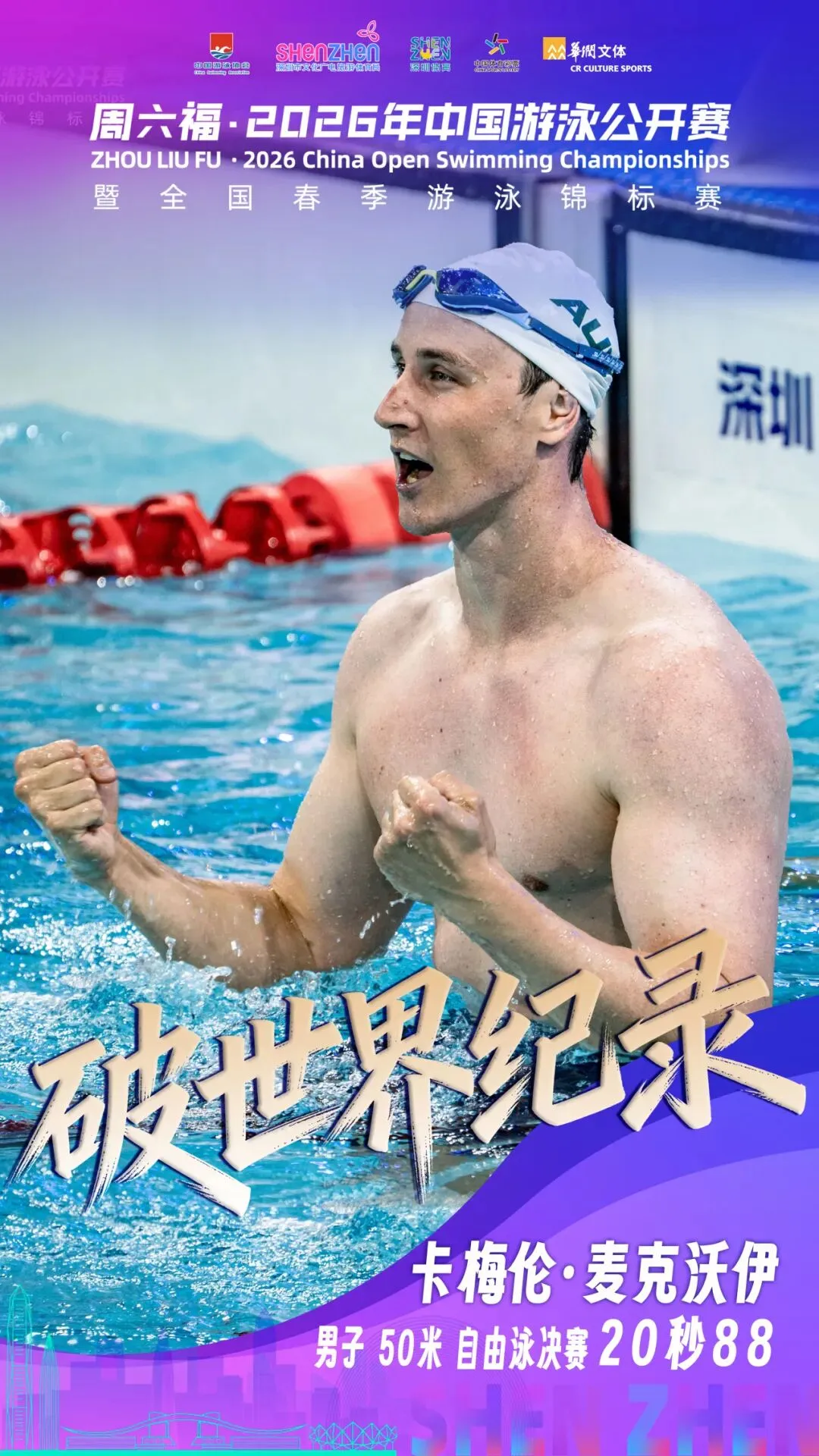 澳大利亚名将卡梅伦·麦克沃伊在这里以20秒88打破男子50米自由泳世界纪录,赛后他难掩激动:“这里的场馆设施一流,观众的热情给了我巨大的能量。31岁还能突破极限,证明只要科学训练,巅峰期可以延续得更久。”