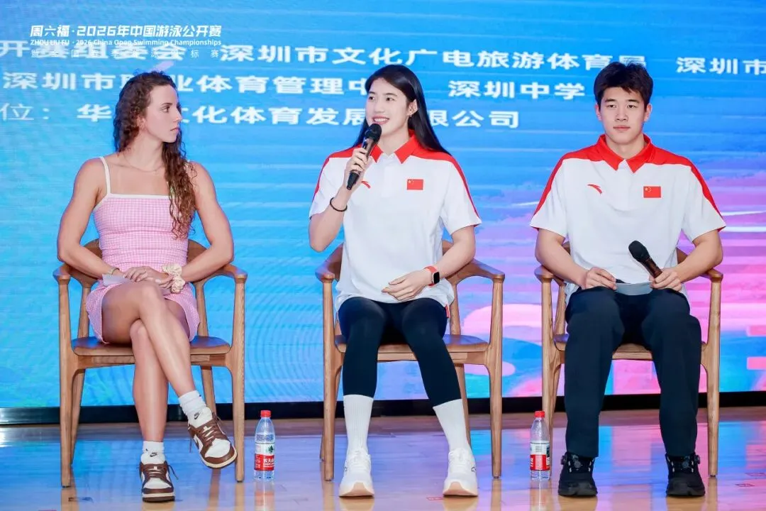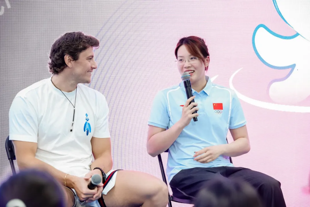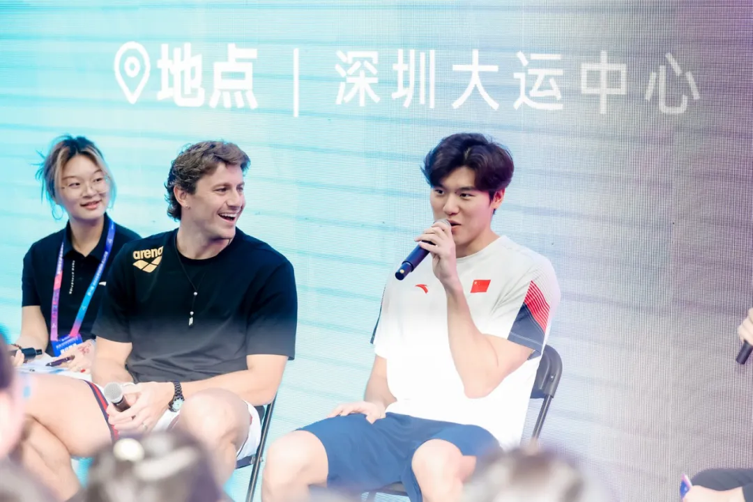 开赛前,张雨霏、潘展乐、麦克沃伊等九位世界冠军走进深圳中学校园。这场被师生称为“冠军课”的活动,让顶尖运动员与青少年面对面交流。潘展乐分享了自己从“看台观战选手”到奥运冠军的逆袭之路,张雨霏坦言“我还要游到洛杉矶”,美国名将亚历克斯·沃尔什真诚讲述被取消铜牌后如何重新出发。