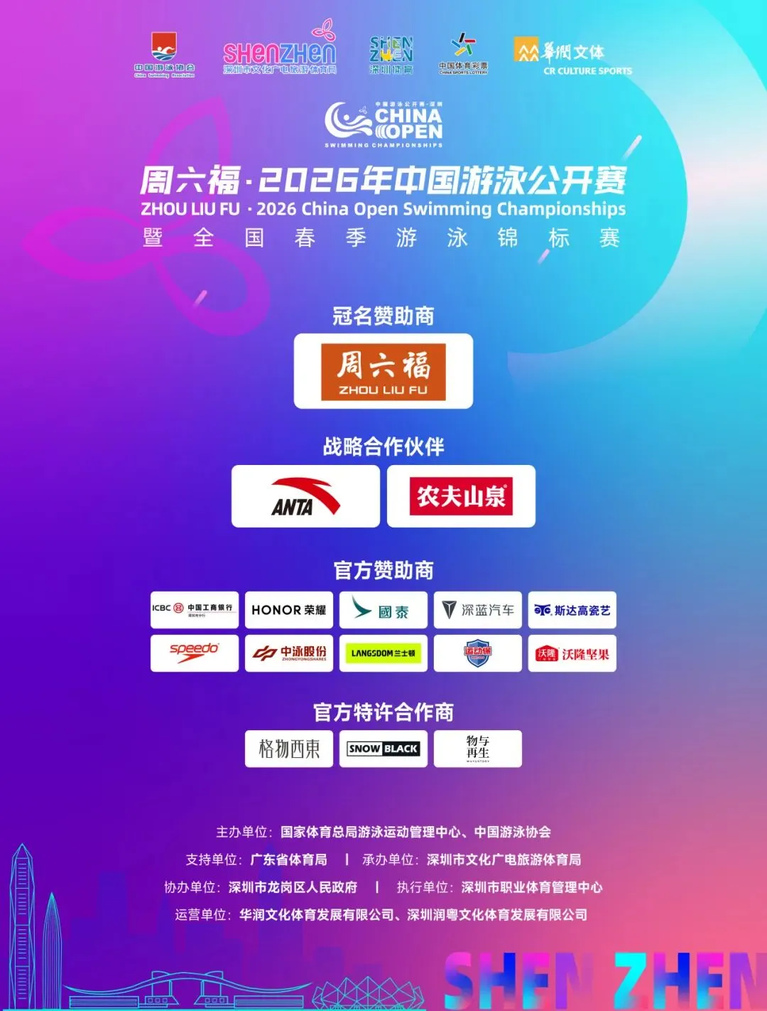 周六福·2026年中国游泳公开赛期间,大运中心游泳馆的观众席几乎场场爆满。数据显示,赛事期间日均门票收入超过100万元。
