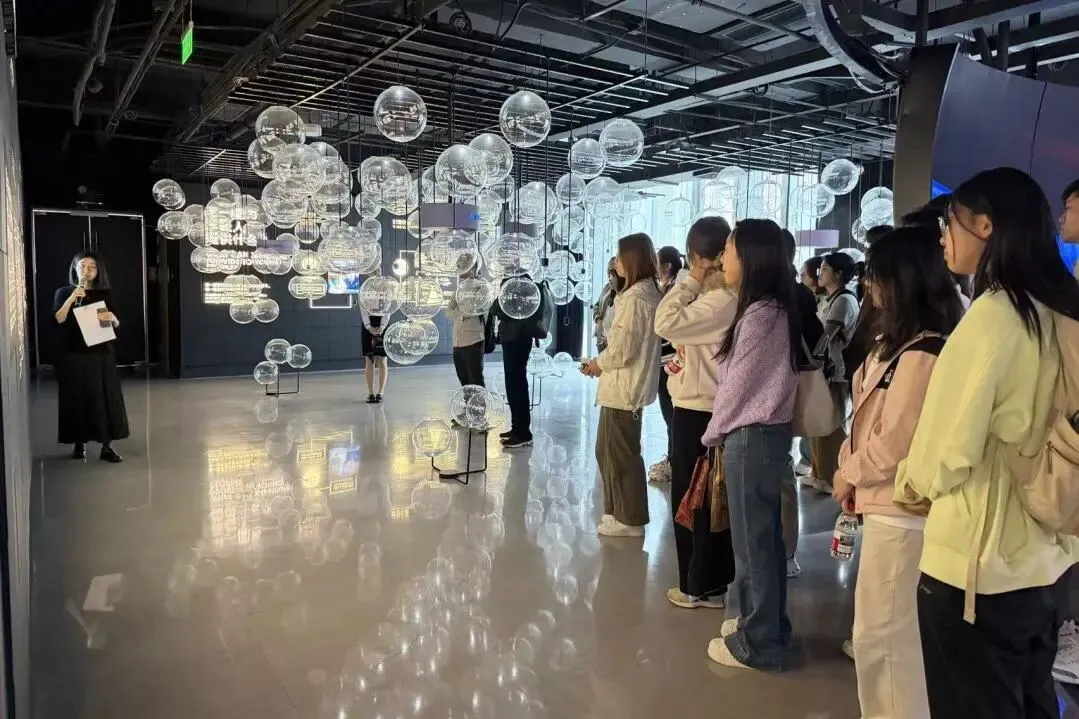 本次訪學最後一站為騰訊公司,在騰訊展廳,師生通過45分鐘的沉浸式導覽,深入了解騰訊在雲計算、大模型等領域的技術佈局與發展成果,並親身體驗敦煌壁畫數字化項目、AI守護生命溫度應用、與南方航空合作的飛行員模擬駕駛艙以及重現千禧年記憶的“QQ網吧”等互動場景。透過多元展示,同學們切身感受到科技對生活品質的提升,亦在心中埋下“科技向善”的種子。