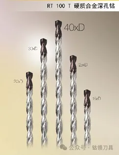 钴领RT100T 深孔钻的标准品,种类多,规格齐全,最高可加工40xD孔。整体硬质合金高性能钻头为您的生产过程提供了最大的成本效益和效率,也可作为特殊的解决方案满足个别要求。