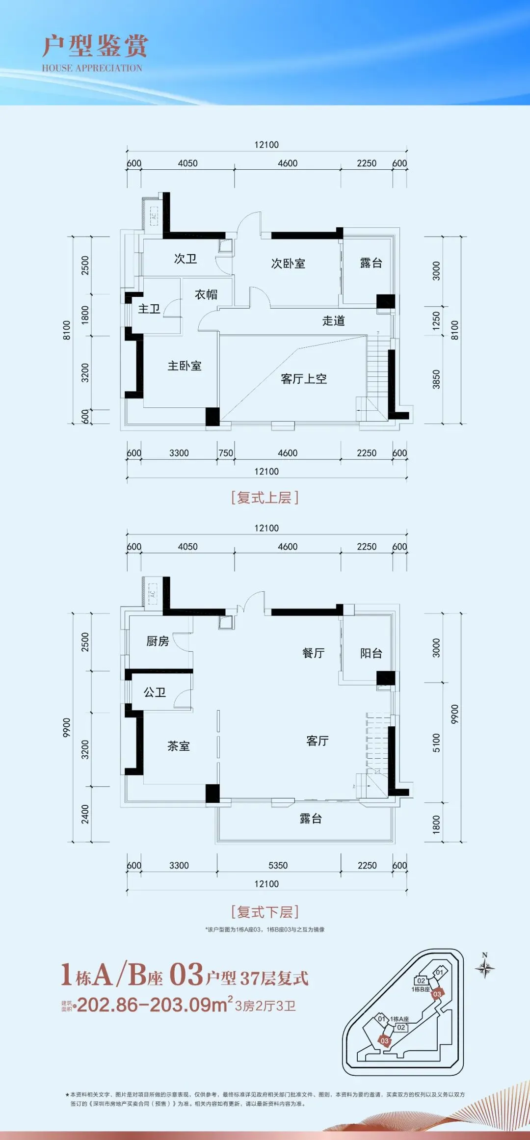 最后再来看看各楼栋户型,最小建面约87㎡的3房,最大建面约450㎡的大复式: